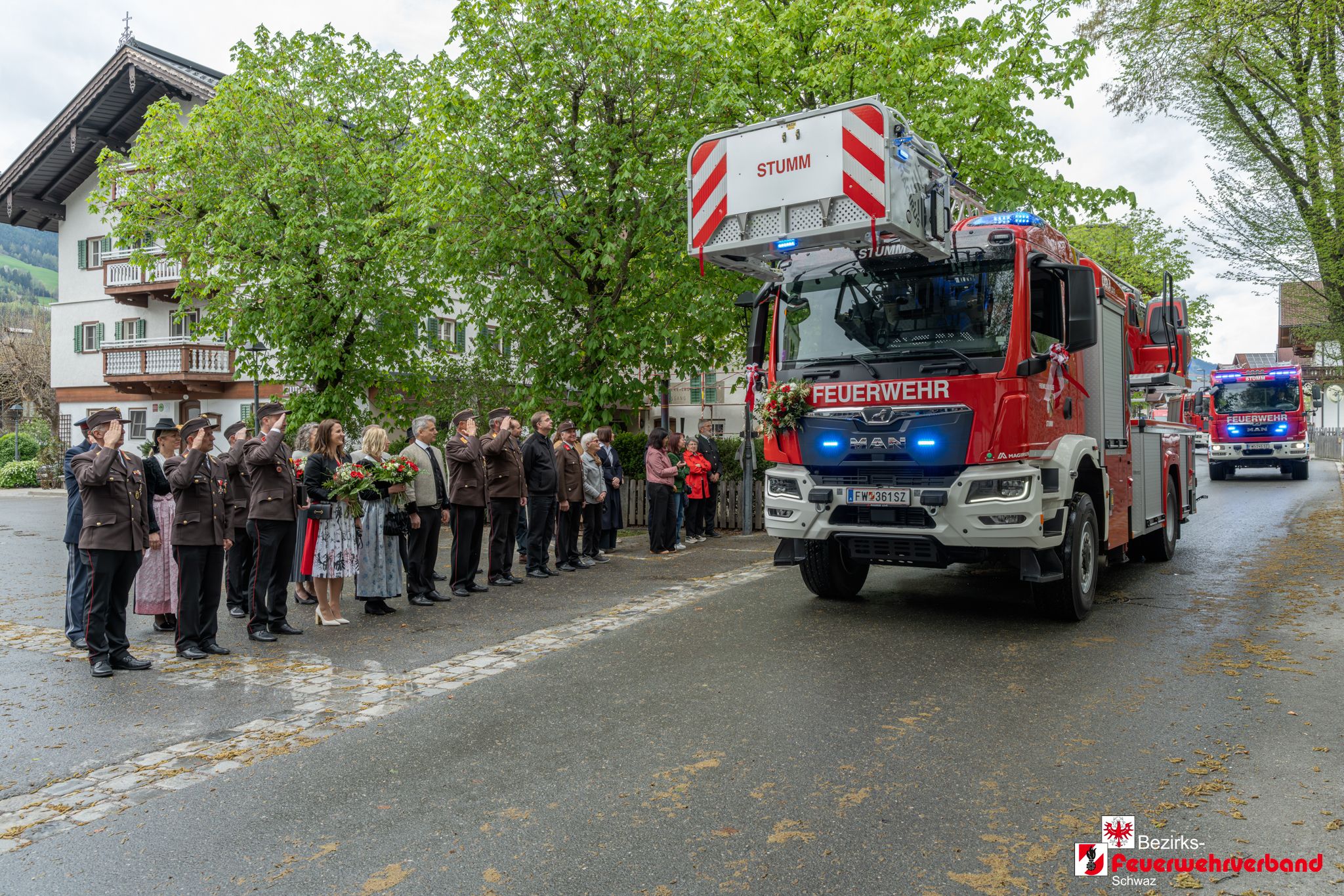 Florianifeier und Segnung der neuen Drehleiter in Stumm