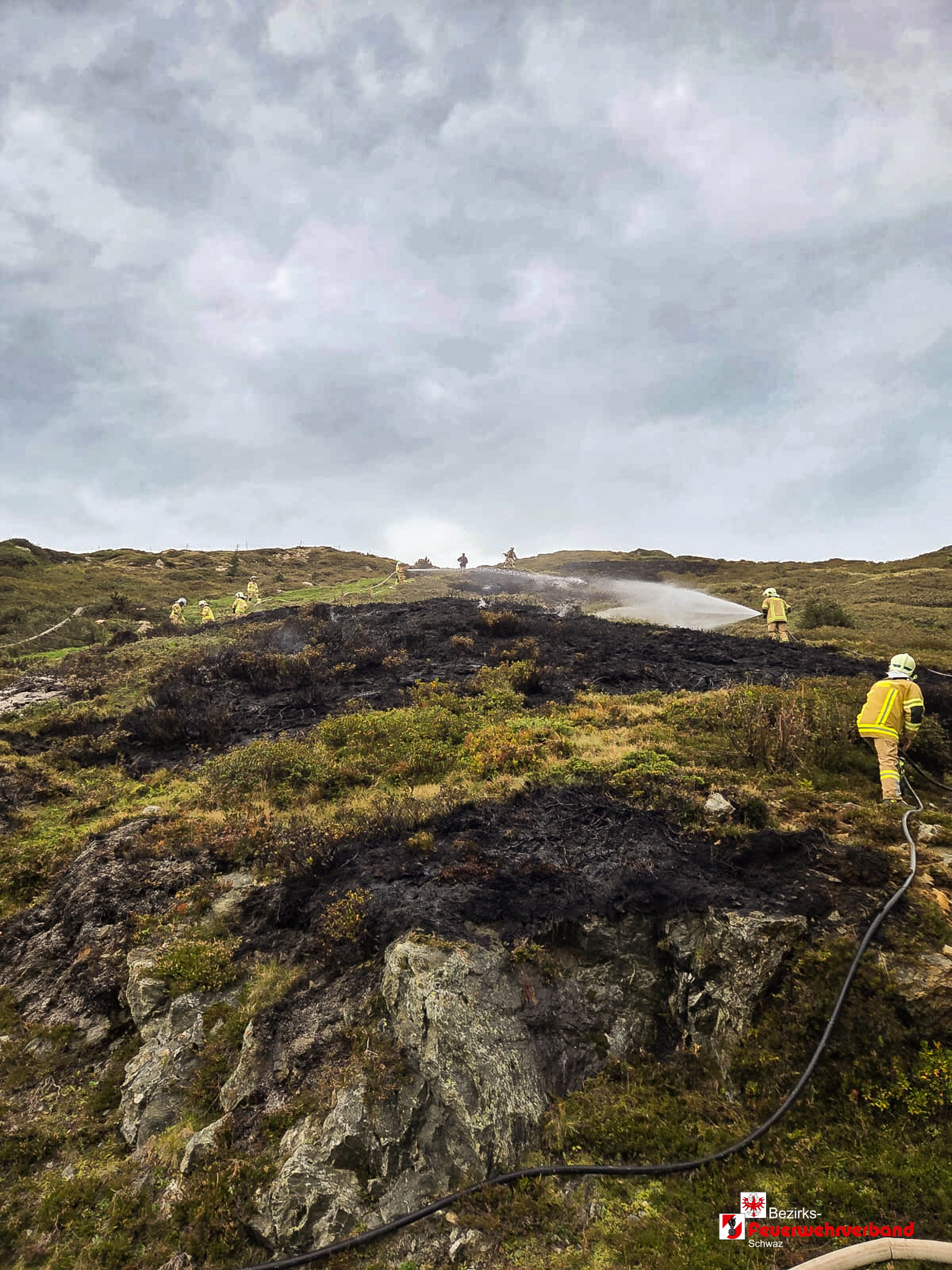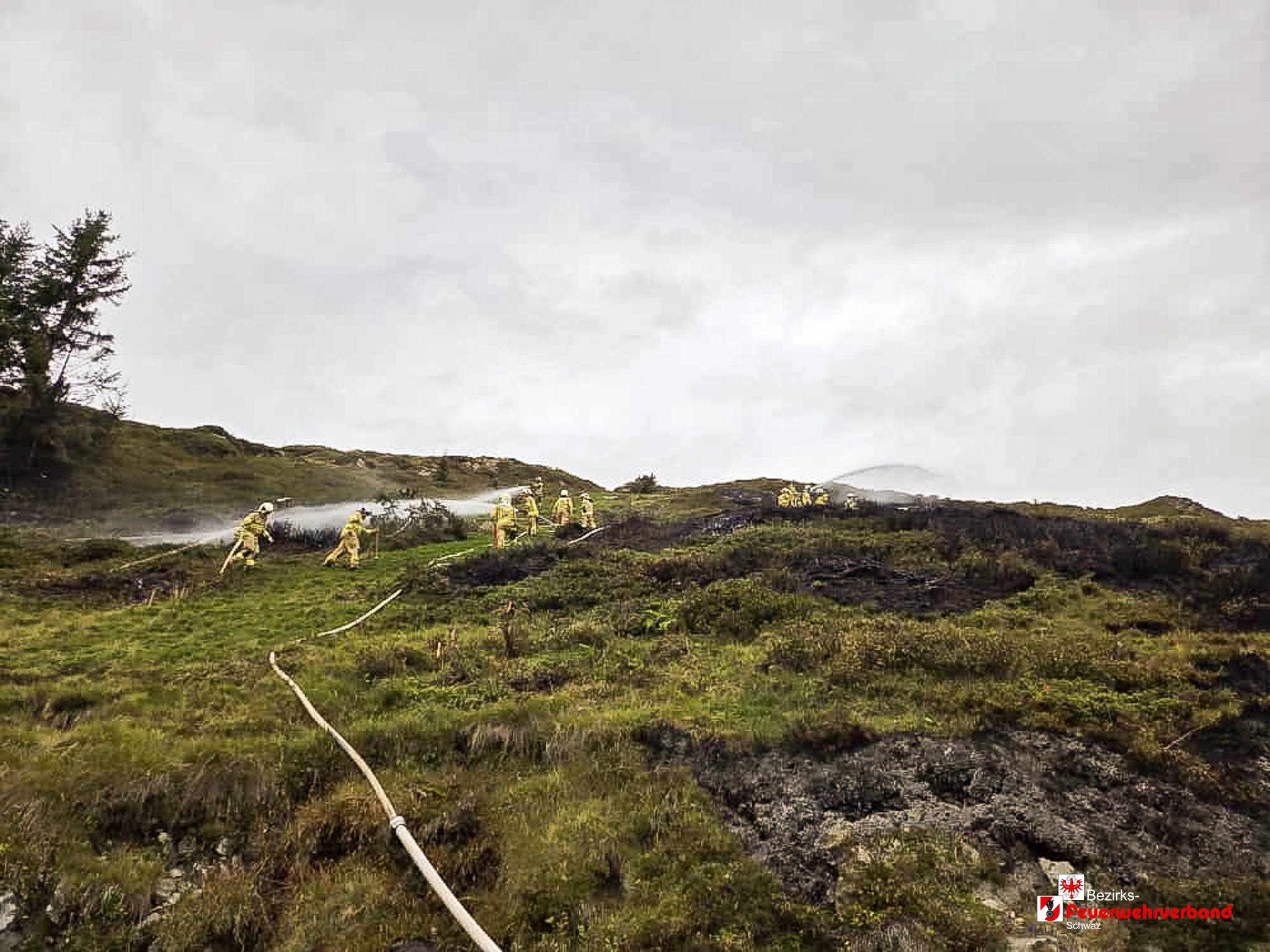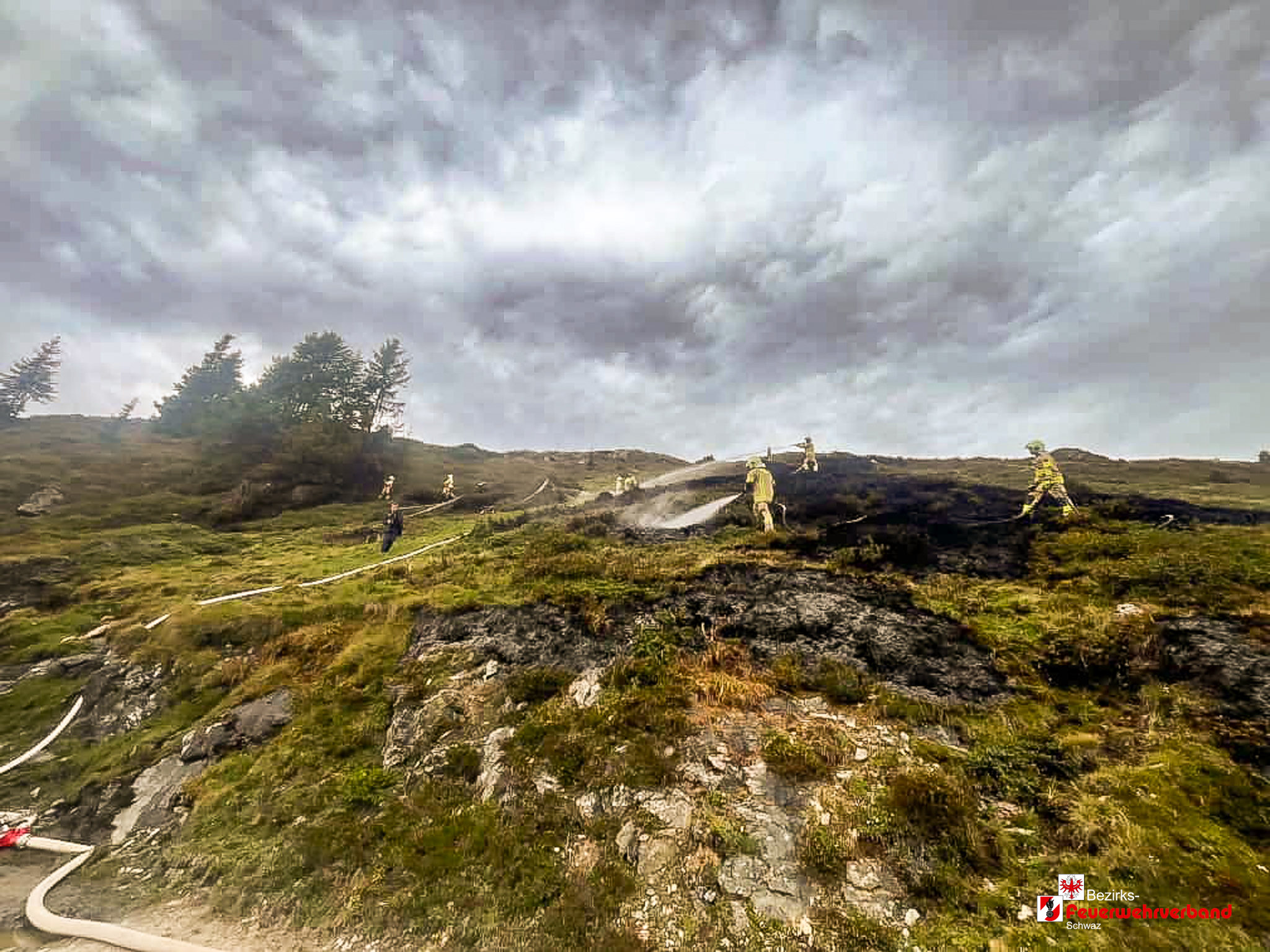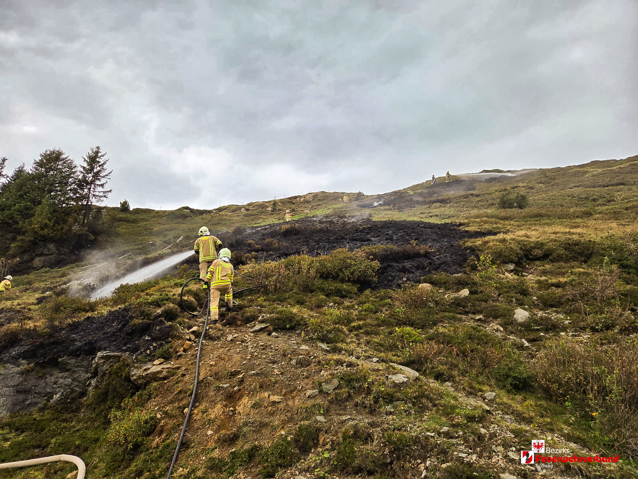 Nach einer Anfahrtszeit von rund 45 Minuten trafen die ersten Einsatzfahrzeuge ein. Vor Ort stellte sich heraus, dass eine Wiesenfläche von etwa 200 m² in Brand geraten war. Aufgrund der schwierigen Löschwasserversorgung wurde zusätzlich ein Tanklöschfahrzeug der Feuerwehr Kaltenbach angefordert. Das Löschwasser wurde aus einem Bach angesaugt und mittels Relaisleitung zum Brandherd gefördert. Ergänzend bekämpften die Einsatzkräfte die Flammen mit Löschrucksäcken und Hacken.