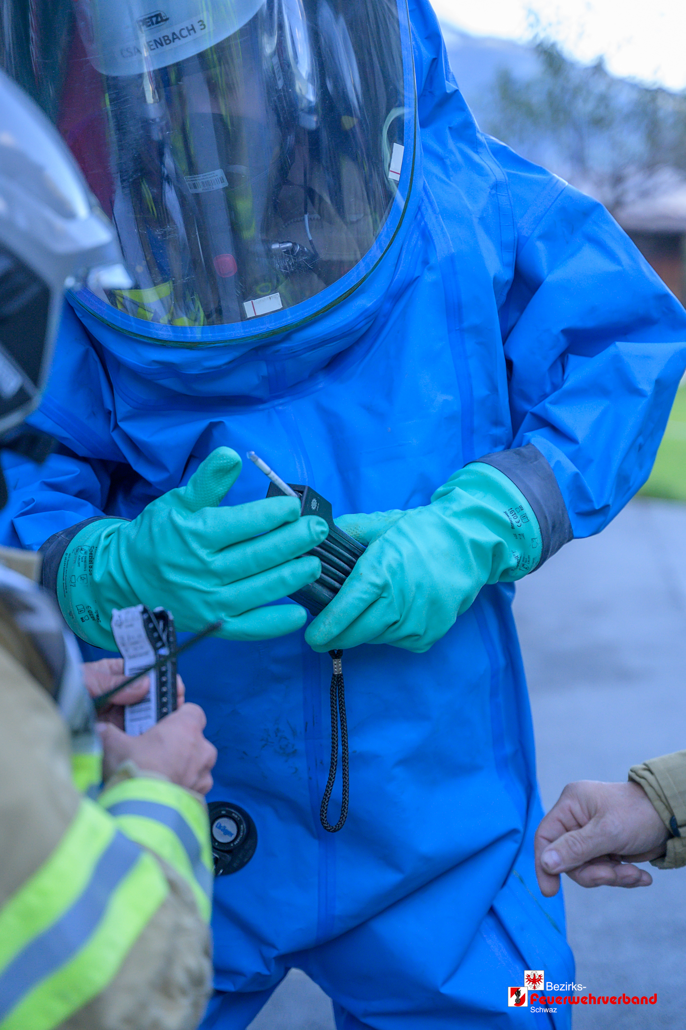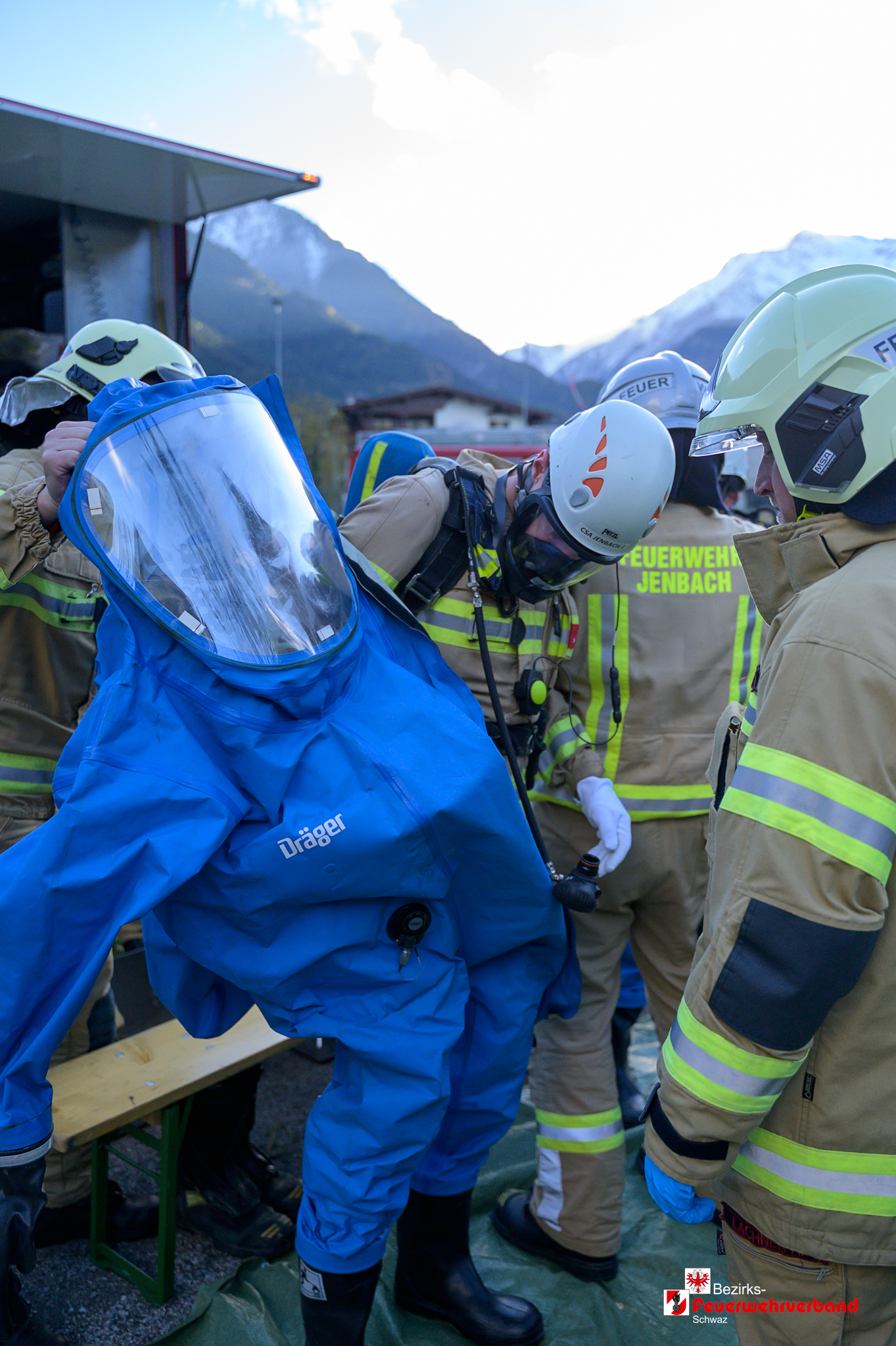 Zur Unterstützung wurde die Feuerwehr Jenbach nachalarmiert, um unter Vollschutz die Ursache zu lokalisieren. Der Bereich wurde abgesperrt, Messungen bestätigten erhöhte Chlorgaswerte. Nach Belüftung und Kontrolle konnte Entwarnung gegeben werden.