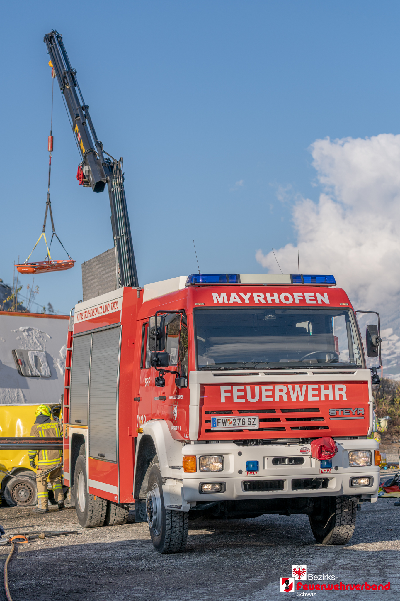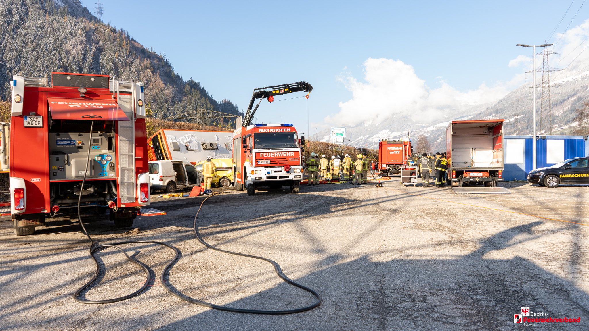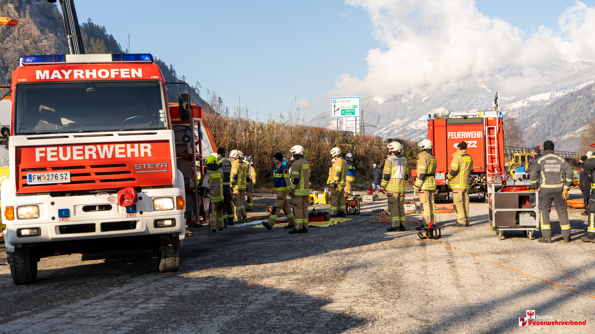 Der Einsatzleiter ließ daraufhin umgehend die Feuerwehren aus Mayrhofen, Gerlos und Tux mit zusätzlichen hydraulischen Rettungsgeräten sowie die Berufsfeuerwehr Innsbruck mit dem Kranfahrzeug zur Unterstützung nachalarmieren. Parallel dazu rückte ein Großaufgebot des Rettungsdienstes an, um die medizinische Versorgung sicherzustellen. Im Fokus der Einsatzübung standen sowohl die übergreifende Zusammenarbeit aller Einsatzorganisationen als auch die technische Rettung der verletzten Personen.