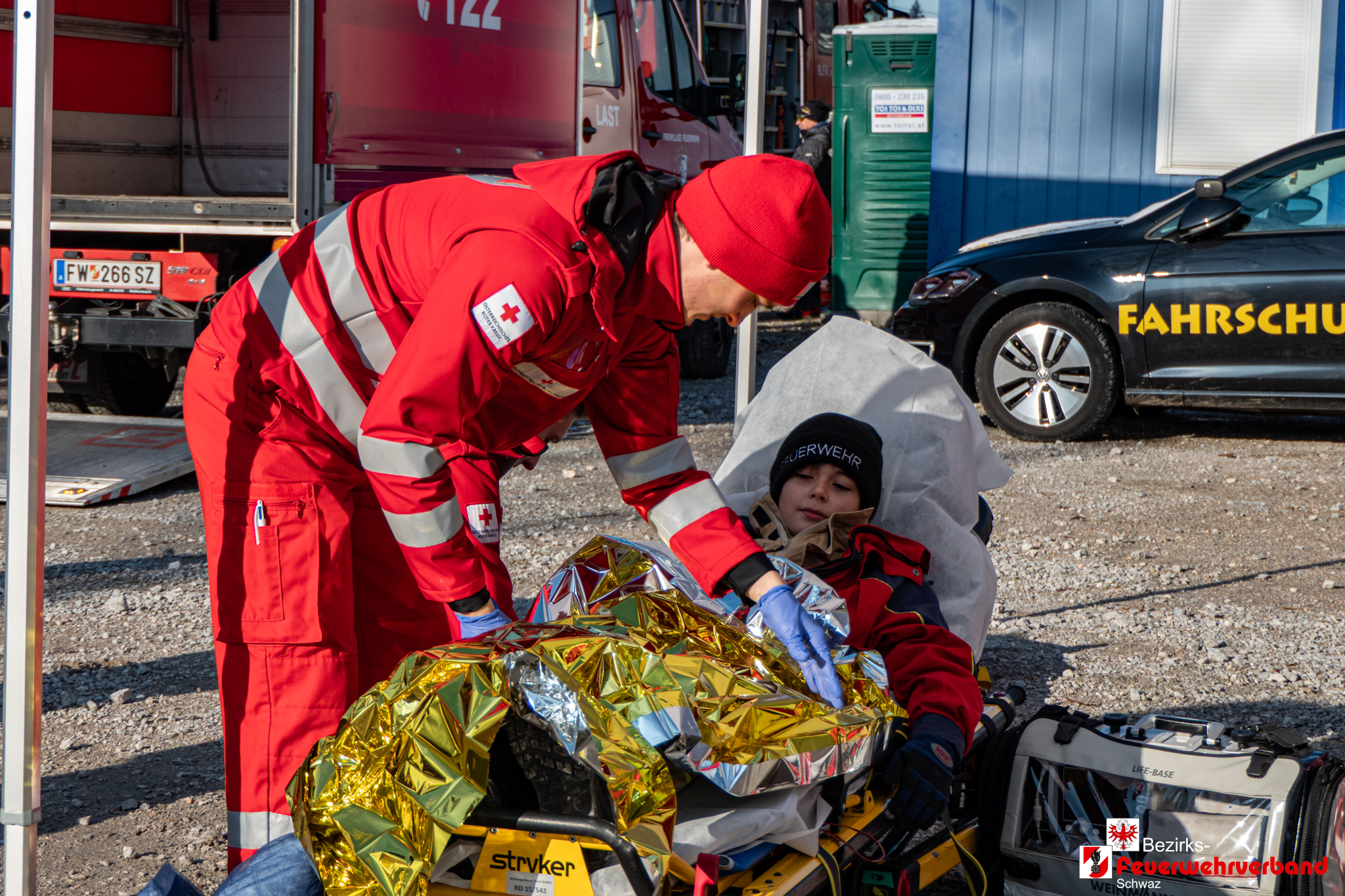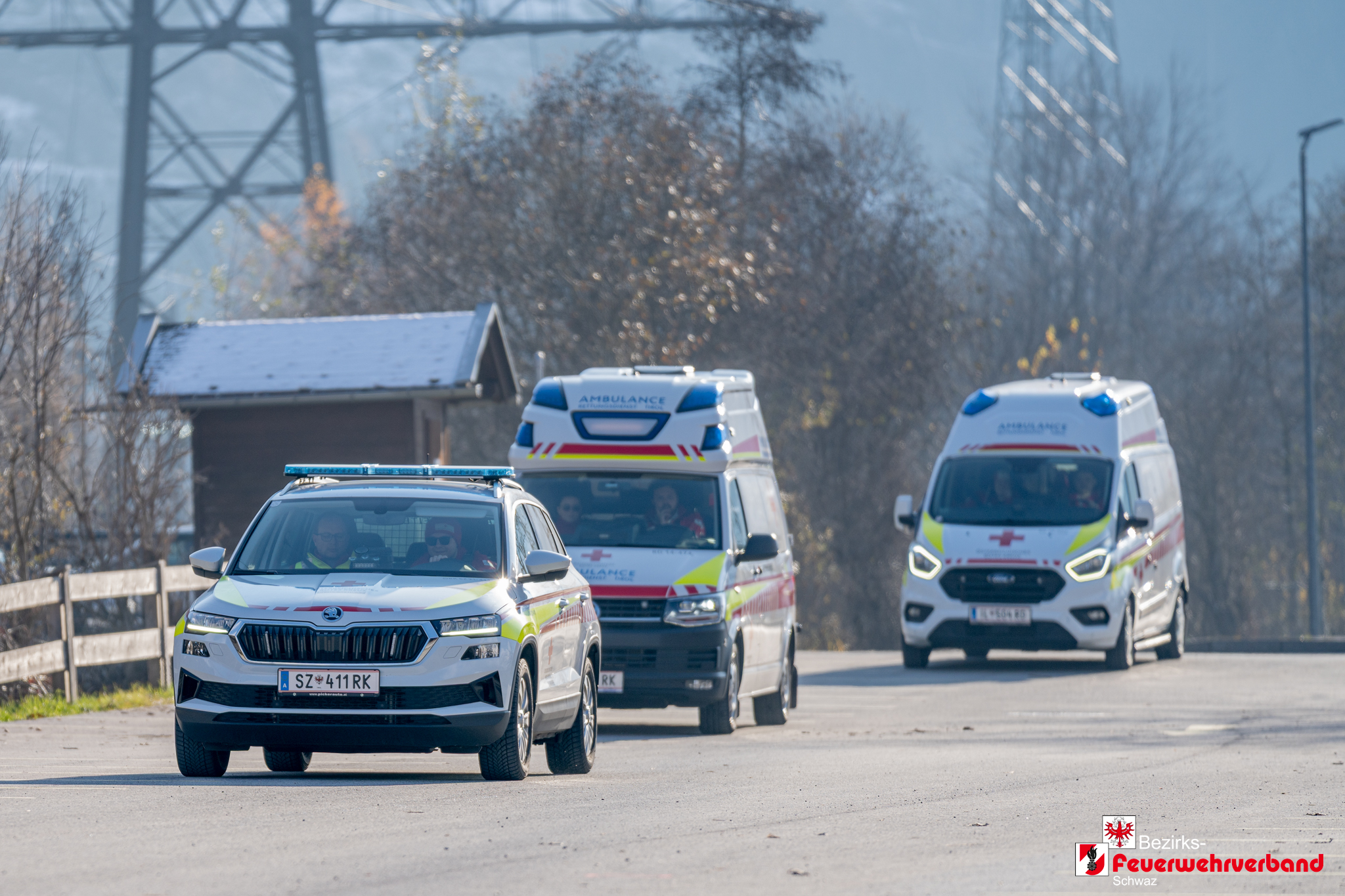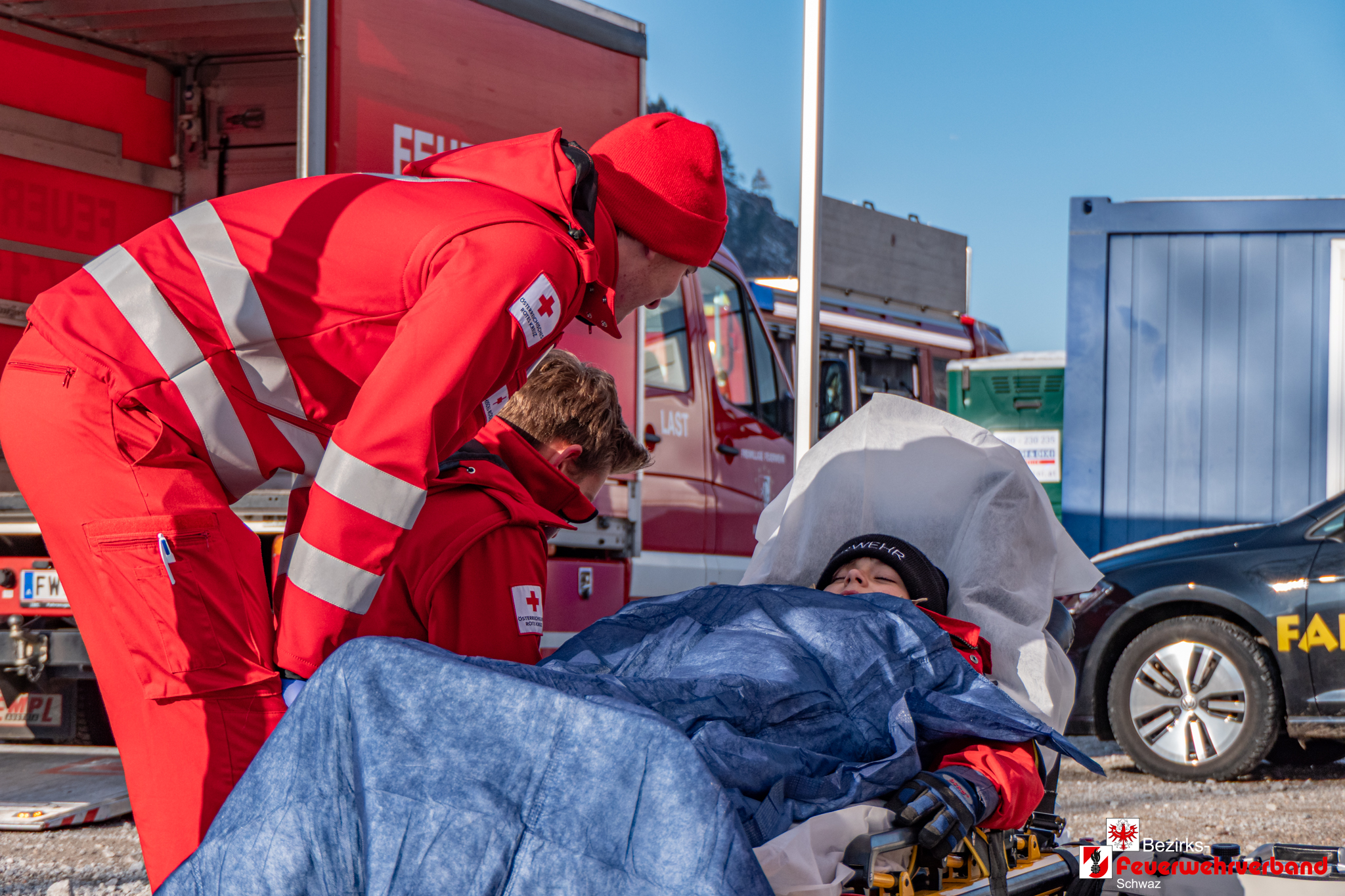 Der Einsatzleiter ließ daraufhin umgehend die Feuerwehren aus Mayrhofen, Gerlos und Tux mit zusätzlichen hydraulischen Rettungsgeräten sowie die Berufsfeuerwehr Innsbruck mit dem Kranfahrzeug zur Unterstützung nachalarmieren. Parallel dazu rückte ein Großaufgebot des Rettungsdienstes an, um die medizinische Versorgung sicherzustellen. Im Fokus der Einsatzübung standen sowohl die übergreifende Zusammenarbeit aller Einsatzorganisationen als auch die technische Rettung der verletzten Personen.