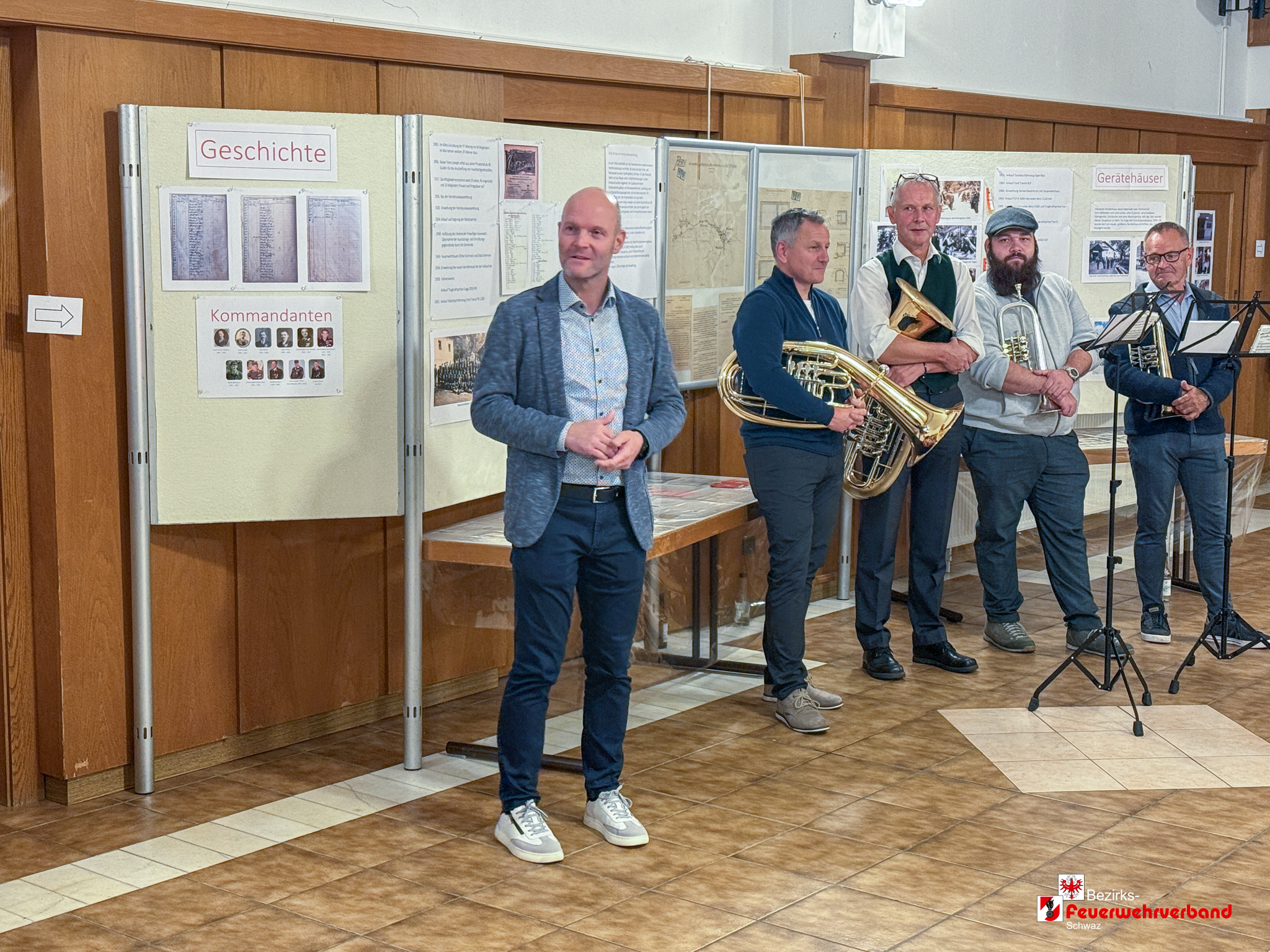 Noch bevor die Ausstellung der breiten Öffentlichkeit zugänglich war, wurde sie am 14.11.2025 im feierlichen Rahmen mit geladenen Gästen eröffnet. Der Einladung des Chronistenteams folgten unter anderem Pfarrer Xavier Sebastian, Bürgermeister-Stellvertreter Andreas Singer, der Ausschuss der Feuerwehr Wiesing, Vertreter des Bezirks-Feuerwehrverbandes Schwaz sowie einzelne Vertreter umliegender Feuerwehren.