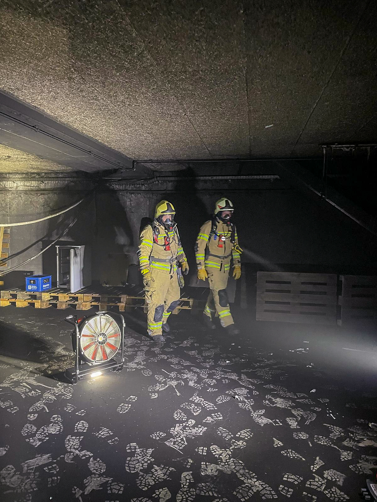 Im Bereich einer Werkbank wurde ein Brandherd festgestellt, der vermutlich in der Nacht von Montag auf Dienstag entstanden ist und aufgrund von Sauerstoffmangel selbstständig erloschen war. Nach umfangreichen Belüftungsmaßnahmen mit mehreren Belüftungsgeräten sowie unserem Großlüfter konnte die Einsatzstelle an die Polizei übergeben werden.