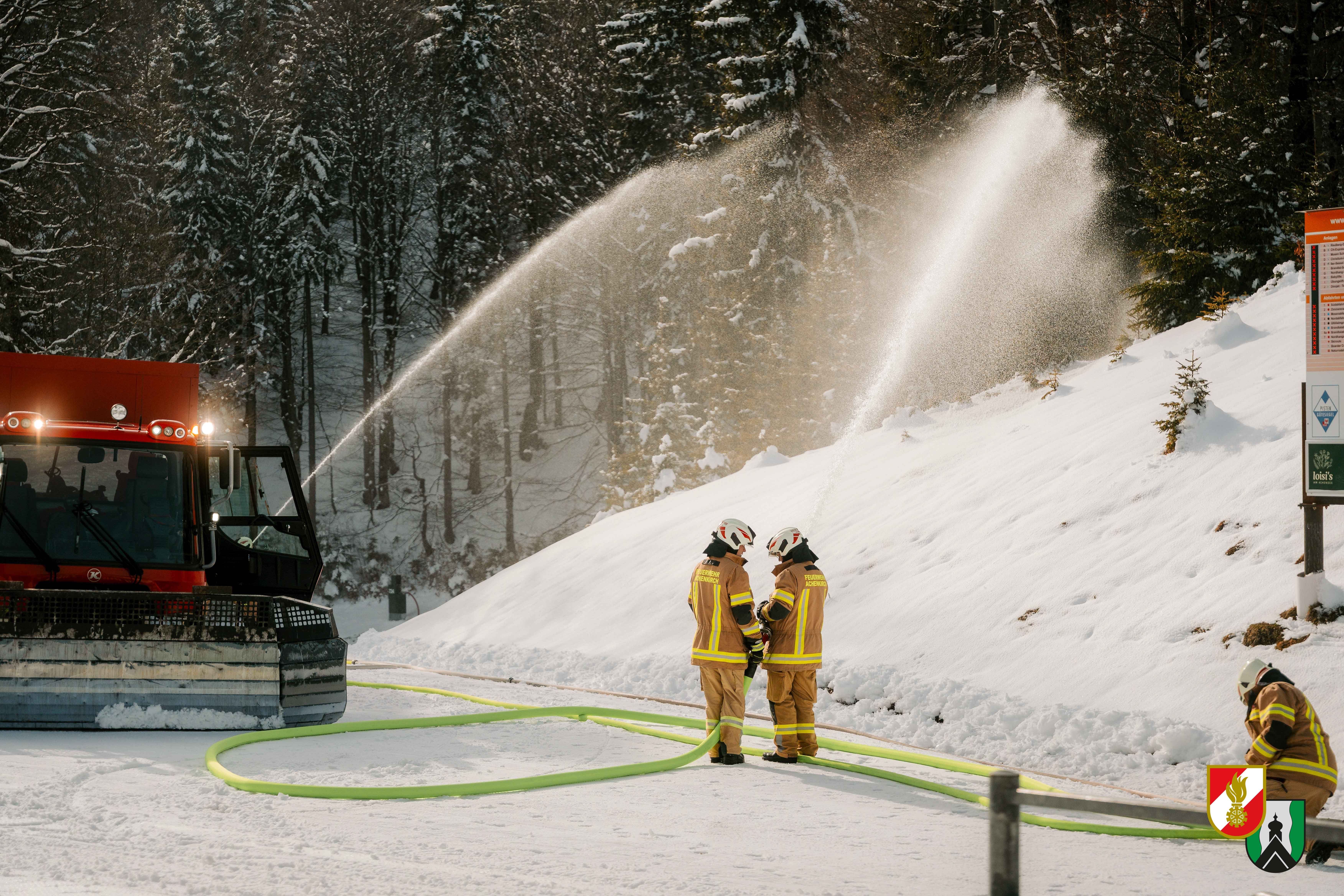 Am Nachmittag des 28.03.2026 fand die Winterübung der Feuerwehr Achenkirch auf der Christlum statt. Übungsannahme war ein Brand im Bereich der Hochalmlifte, konkret bei der Schlosserei der Bergstation des 4er-Sessellifts, wobei mehrere Personen als vermisst galten.