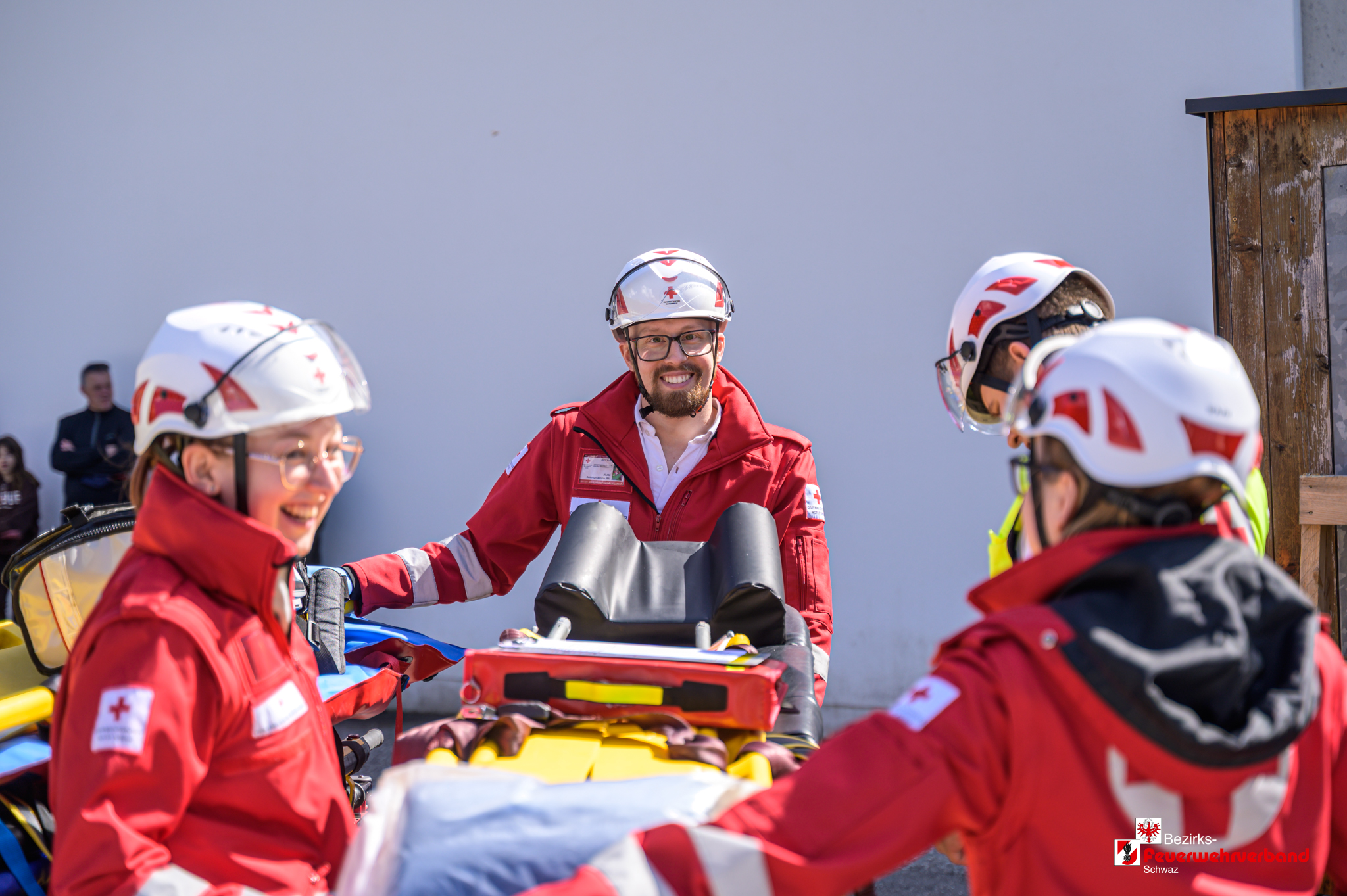 Auch das Rote Kreuz war mit 2 Fahrzeugen und 6 Einsatzkräften vor Ort und übernahm die Versorgung der Verletzten.