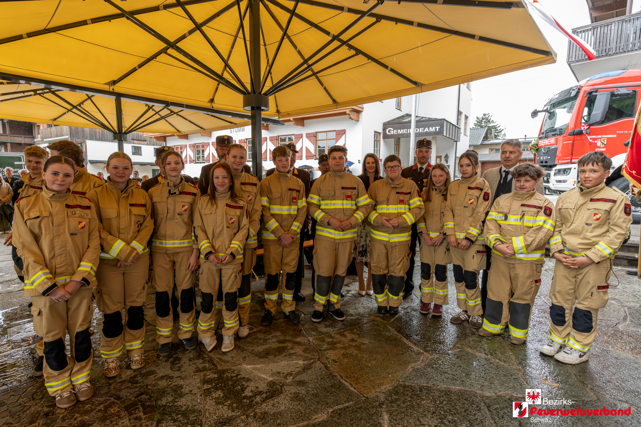 Zu Beginn versammelten sich die Feuerwehrmitglieder, die Bundesmusikkapelle Stumm, die Schützenkompanie Stumm sowie zahlreiche Ehrengäste beim Rüsthaus der Feuerwehr. Gemeinsam marschierten sie zum Pavillon der Gemeinde Stumm, wo die Feierlichkeiten stattfanden.