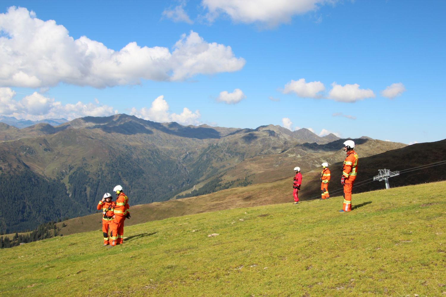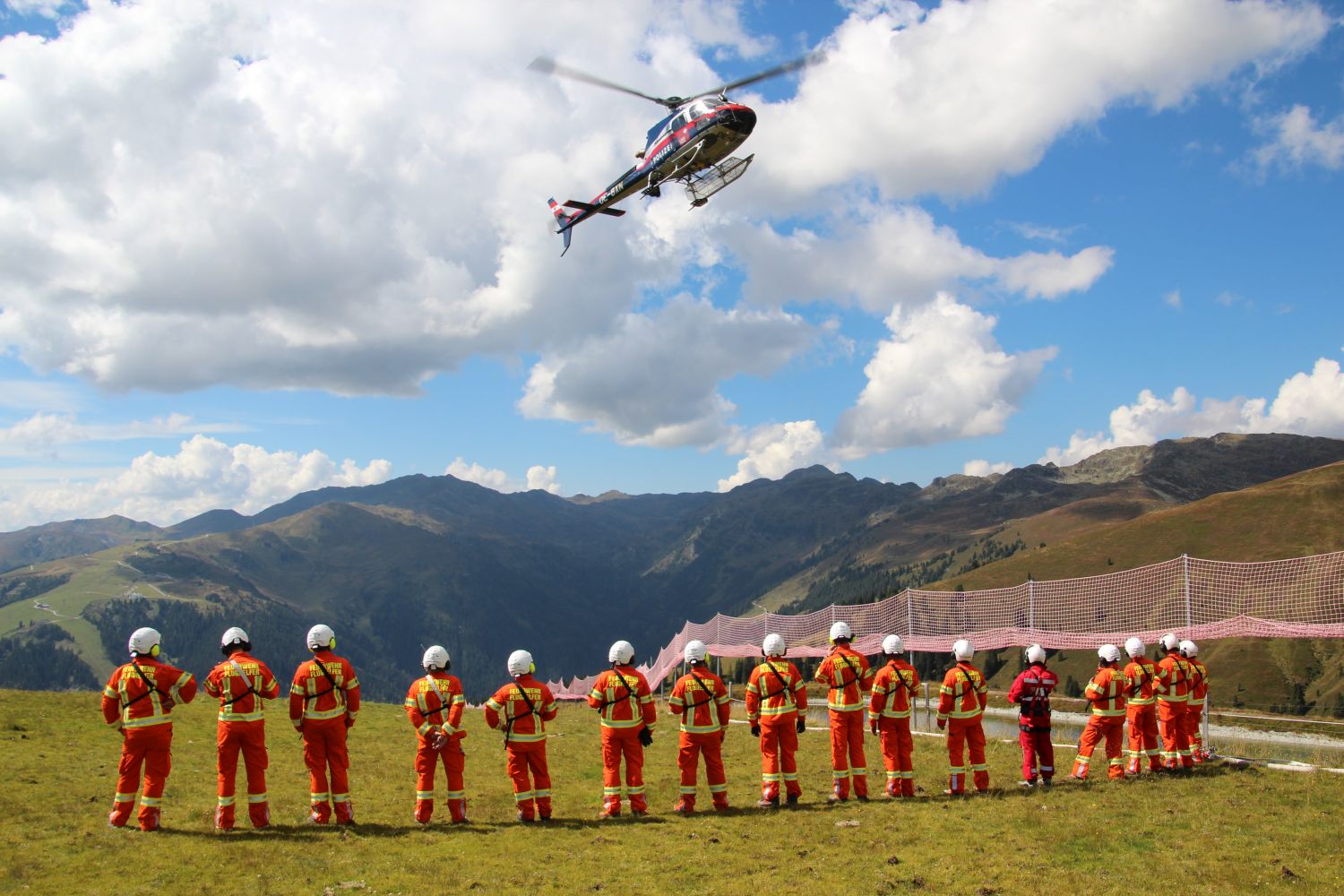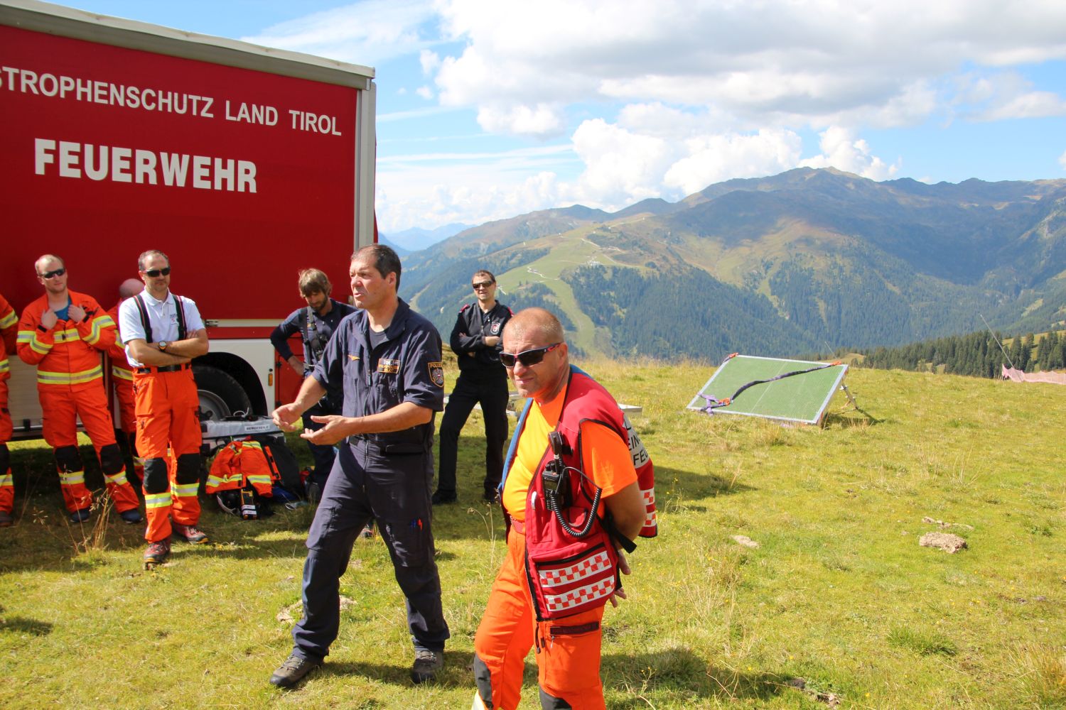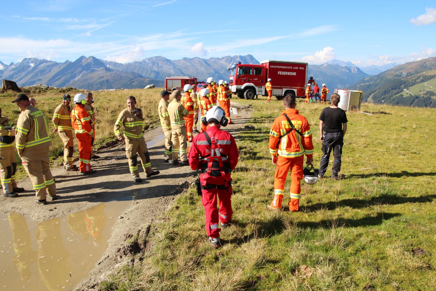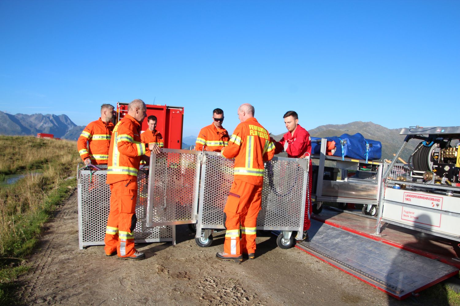 Um 06:00 Uhr morgens starteten die Teams aus den Bezirken Schwaz, Imst, Innsbruck Stadt und Innsbruck Land in Richtung Zillertal. Die Feuerwehr Gerlos, zu deren Bereich das Übungsgebiet gehört, stieß bei deren Gerätehaus hinzu, ehe es ins Gelände ging. Schon die Anfahrt erforderte einiges an Fingerspitzengefühl der Maschinisten. Im Skigebiet von Gerlos auf ca. 2000m Seehöhe, nahe an der Grenze zu Salzburg fand sich ideale Voraussetzungen für die geplanten Übungsflüge.