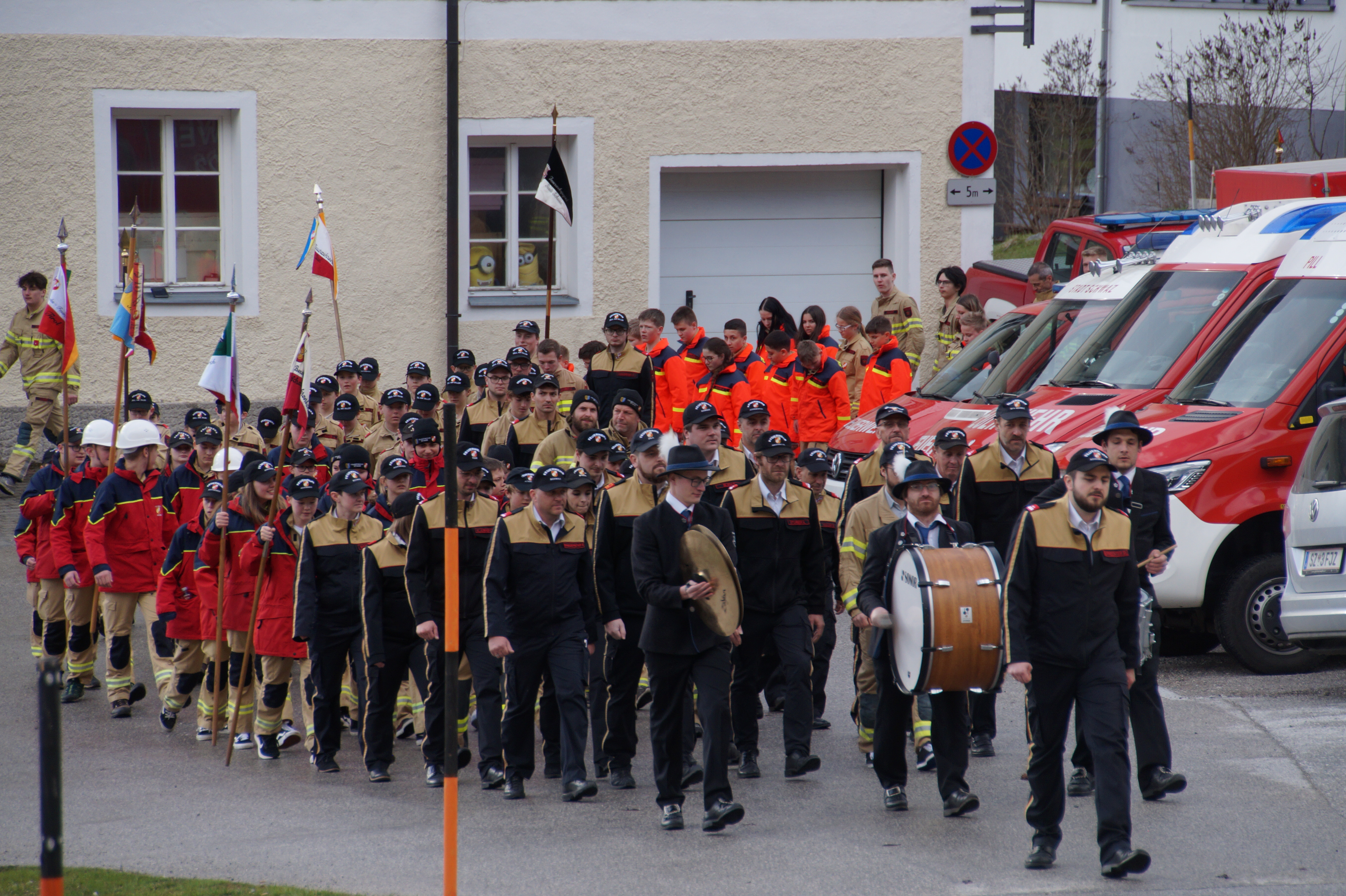 Zu Schlussveranstaltung konnte Sachgebietsleiterin BM Magdalena Bichler neben den angetretenen Jugendfeuerwehren und Betreuern zahlreiche Ehrengäste begrüßen, darunter auch LBD Jakob Unterladstätter, Bezirkskommandant OBR Hansjörg Eberharter sowie Bürgermeister Karl Moser.