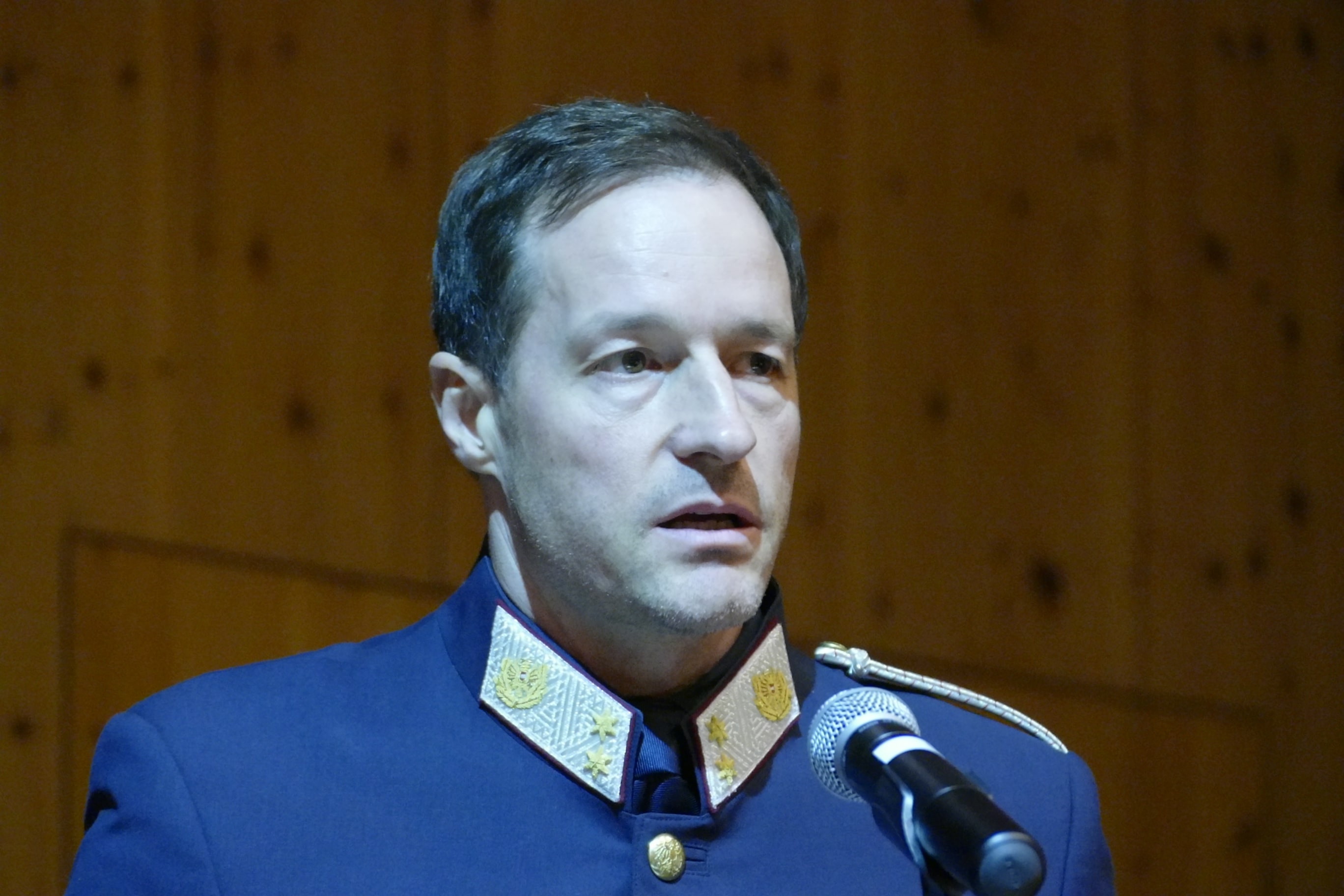 Nach dem Gedenken an die verstorbenen Feuerwehrkameraden folgte der Bericht des Kommandanten Benjamin Stöckl. Beeindruckende Zahlen und Bilder wurden den Kameradinnen und Kameraden sowie den Ehrengästen im Zirben Saal des Tux Centers präsentiert.