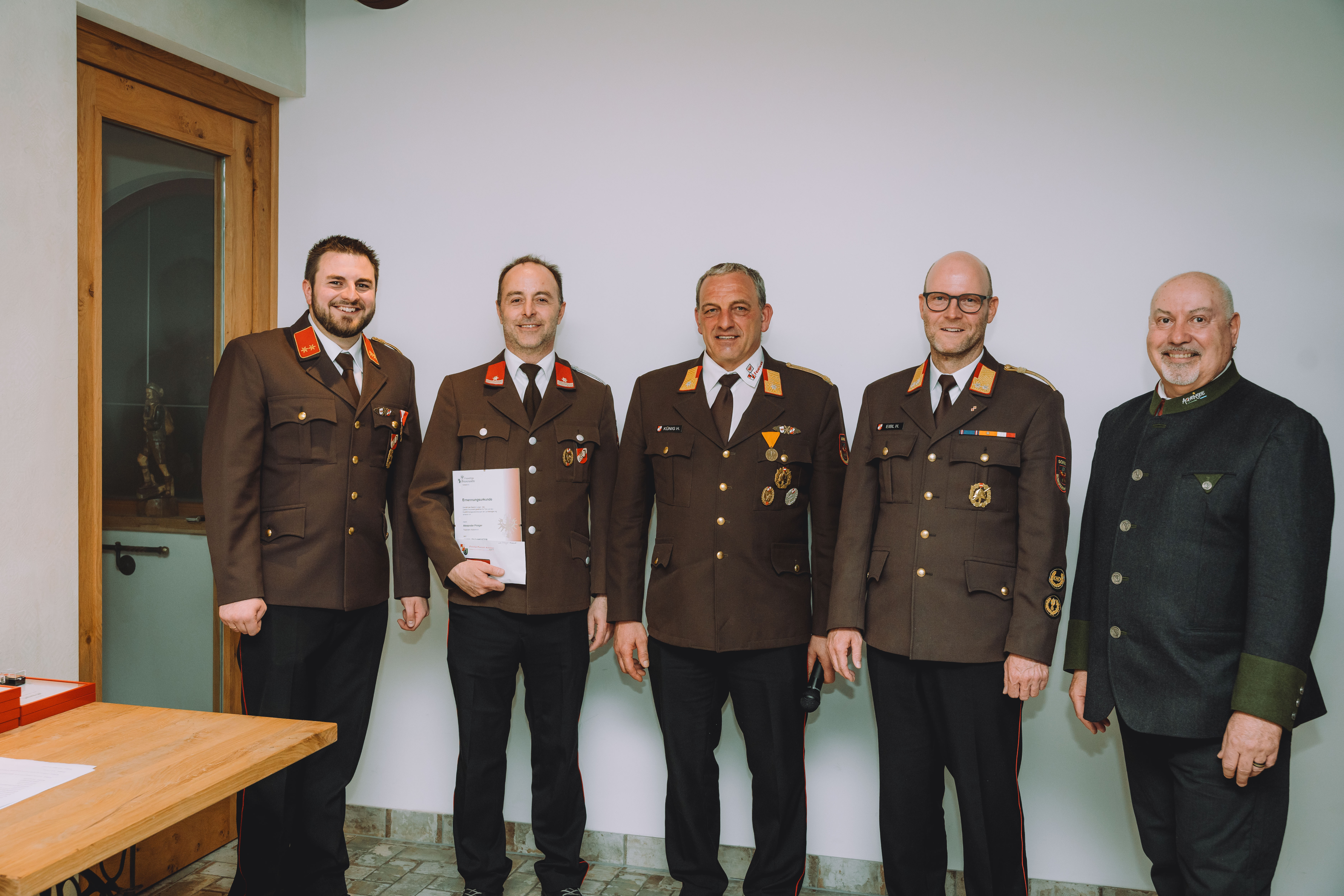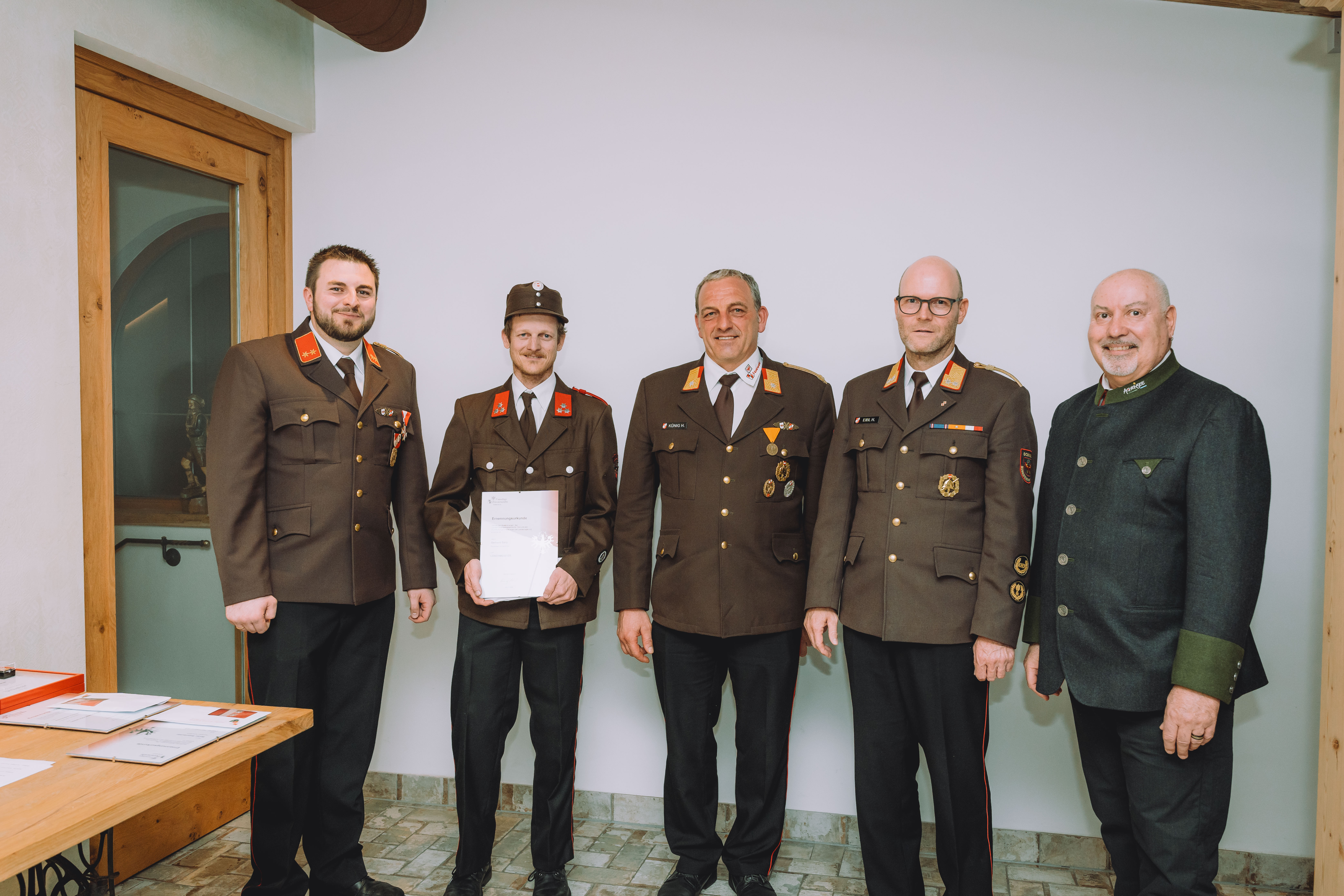Hier kam es zu 613 verschiedenen Ereignissen mit 3457 Mitgliedern und 10623 geleisteten Gesamtstunden. Die Feuerwehr Achenkirch hatte mit 31.12.2023 einen Mitgliederstand von 124 davon 74 im Aktivdienst, 34 in Reserve und 16 in der Feuerwehrjugend. Kommandant Künig Helmut bedankt sich bei allen Kameraden/Innen für die geleisteten Dienste und hofft auf eine weiterhin gute Zusammenarbeit der verschieden Einsatzorganisationen, sowie auf ein unfallfreies Jahr 2024 mit vielen Übungen und wenigen Einsätzen. Kommandantstellvertreter Rupprechter Stefan informiert über die Zahlen der Ausbildungen und Übungen. Insgesamt wurden 93 Übungen mit 1007 Mitgliedern und 2628 Stunden abgehalten. Ein Dank an die Kameraden/Innen und an die Ausbildner. Auf der Tagesordnung unter Punkt 7 stand eine ganze Reihe von Angelobungen, Beförderungen und Ehrungen, die wie folgt aussahen: