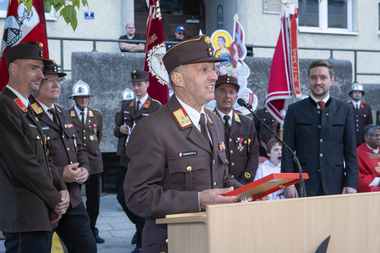 Beim Landesüblichen Empfang konnte der Abgeordnete zum Tiroler Landtag LAbg. und Bürgermeister von Fügen, Dominik Mainusch begrüßt werden, vom Freistaat Bayern der Landrat von Bad Tölz-Wolfratshausen Sepp Niedermaier und der erste Bürgermeister der Stadt Bad Tölz Dr. Ingo Mehner. Von Seiten der Gemeindepolitik waren der Hausherr Bürgermeister Didi Wallner sowie zahlreiche Gemeinderäte vor Ort. Von der Feuerwehrführung konnte Landesfeuerwehrkommandant Jakob Unterladstätter, Bezirksfeuerwehrkommandant Hansjörg Eberharter sowie Abschnittskommandant Walter Theuretzbacher begrüßt werden. Im Anschluss daran folgte die Messe, welche von Pfarrkuratorin Sabine Meraner sowie von Pfarrvikar Mag. Xavier Sebastian geleitet wurde.