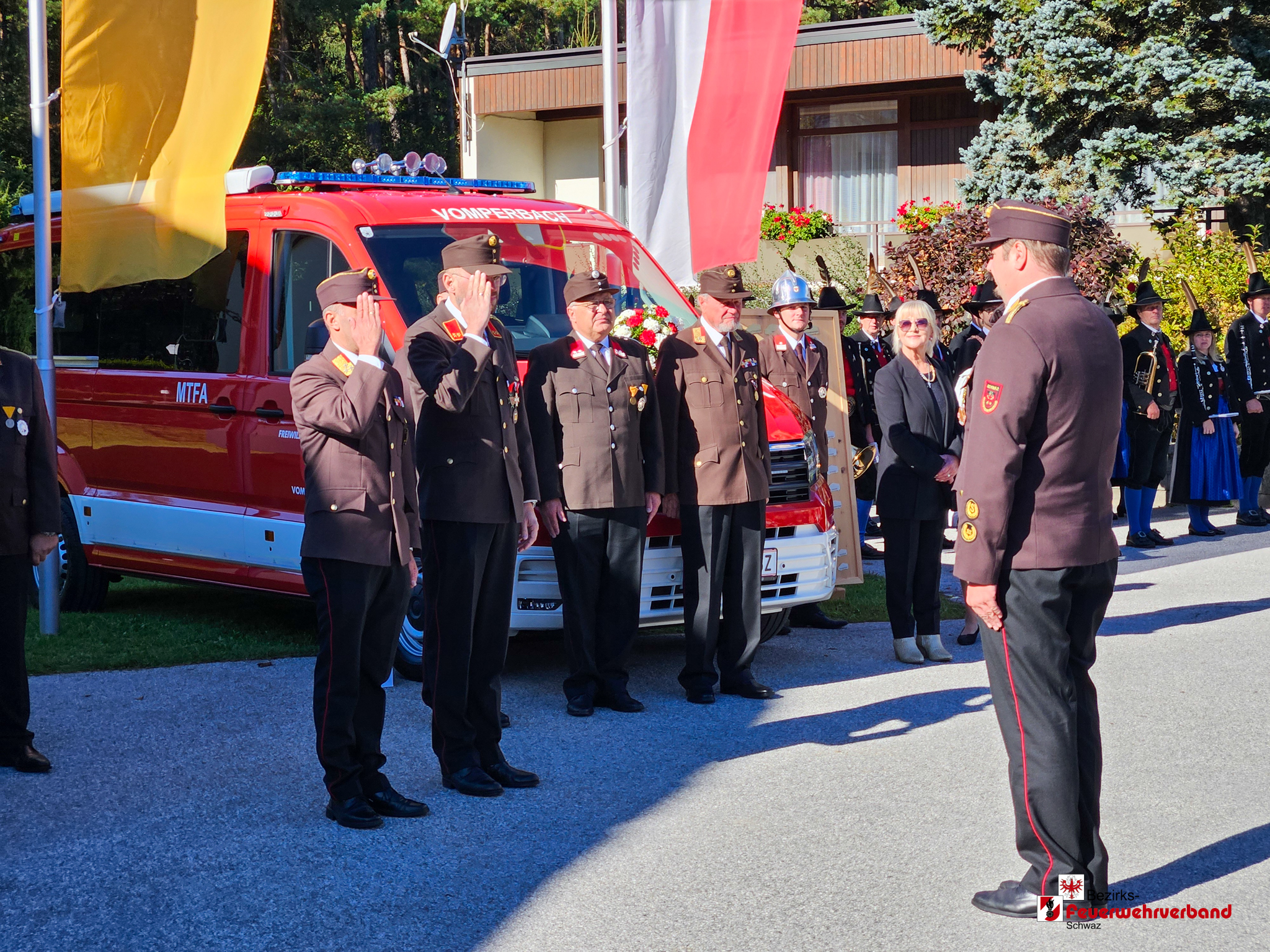 Am Sonntag, den 6. Oktober 2024, fand bei der Freiwilligen Feuerwehr Vomperbach die feierliche Segnung des neuen Mannschaftstransportfahrzeugs (MTFA) statt. Zahlreiche Ehrengäste, Feuerwehrkameradinnen und -kameraden sowie Fahnenabordnungen aus dem gesamten Abschnitt nahmen an der Veranstaltung teil.