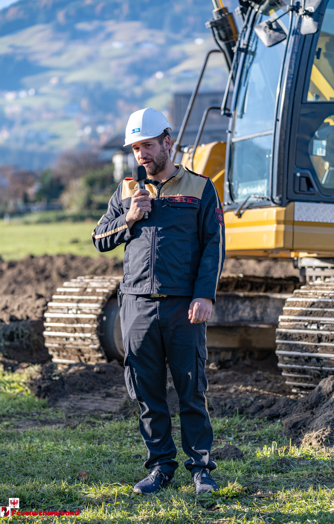 Die feierliche Zeremonie fand auf dem Gelände statt, auf dem das neue Feuerwehrhaus errichtet wird. Zahlreiche Ehrengäste aus Politik, Feuerwehr und Gemeinde waren anwesend, um diesen besonderen Moment zu würdigen. Unter den Gästen waren unter anderem Bürgermeister und Landtagsvizepräsident Dominik Mainusch, Bürgermeister-Stellvertreterin Evi Bielau, sowie der Bürgermeister von Fügenberg, Ing. Josef Unterweger mit dem Architekt Conrad Messner an ihrer Seite. Seitens der Feuerwehr waren Landeskommandant Jakob Unterladstätter, Bezirkskommandant Hansjörg Eberharter mit Stellvertreter Herbert Eibl, Bezirks-Schriftführer Hannes Eberharter sowie Bezirksfeuerwehrinspektor Stefan Geisler anwesend. Auch ein Teil der Mannschaft der Feuerwehr Fügen unter dem Kommando von Reinhard Haun und Stellvertreter Stefan Flörl ließ sich diesen Meilenstein nicht entgehen und rückte mit vier Fahrzeugen zum Spatenstich an.