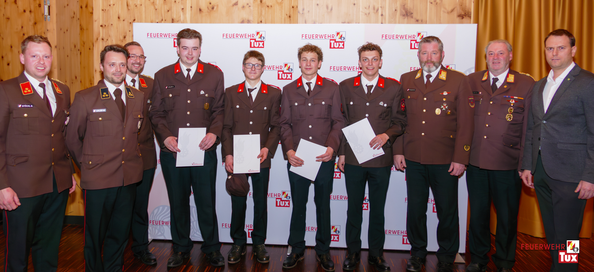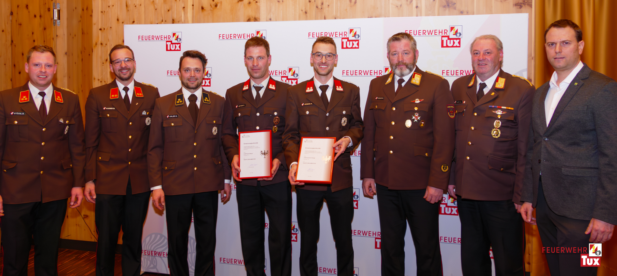 Im Rahmen der 126. Jahreshauptversammlung der Feuerwehr Tux wurden neben den zahlreichen Beförderungen und Ehrungen auch drei besondere Auszeichnungen vorgenommen.
