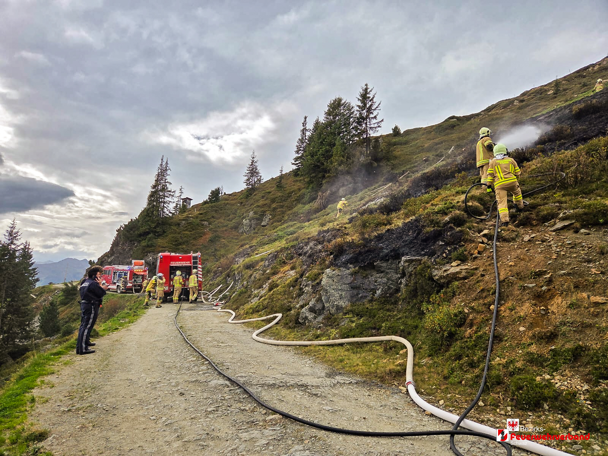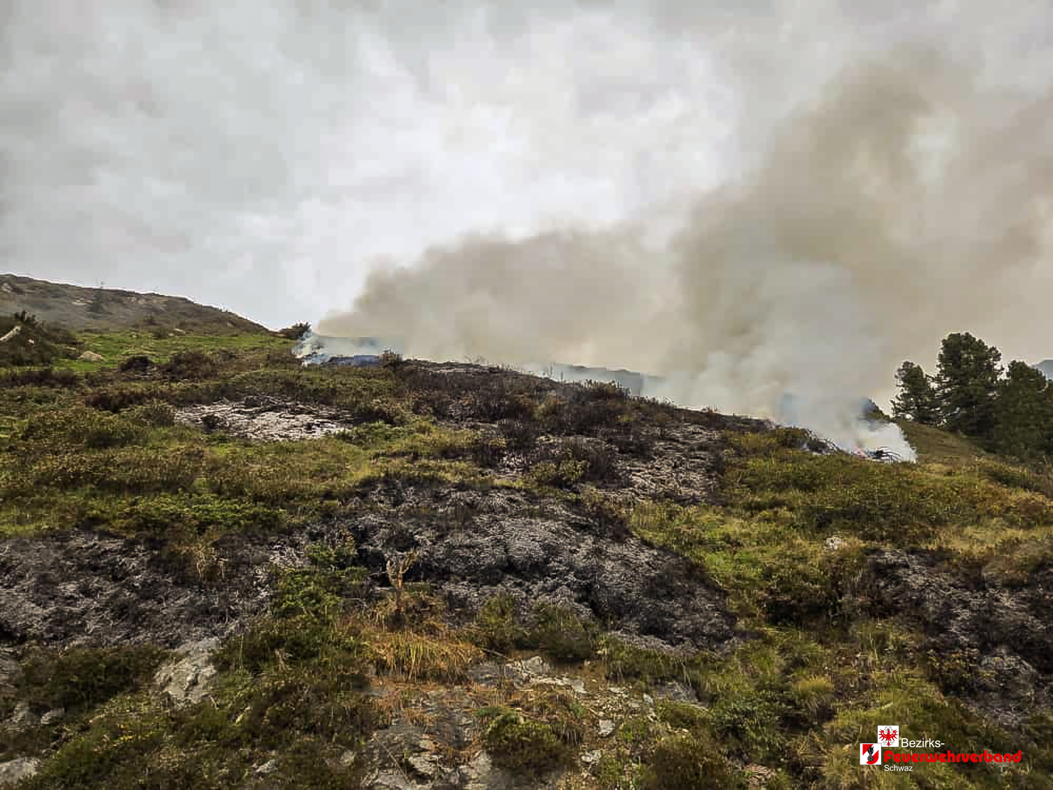 Nach einer Anfahrtszeit von rund 45 Minuten trafen die ersten Einsatzfahrzeuge ein. Vor Ort stellte sich heraus, dass eine Wiesenfläche von etwa 200 m² in Brand geraten war. Aufgrund der schwierigen Löschwasserversorgung wurde zusätzlich ein Tanklöschfahrzeug der Feuerwehr Kaltenbach angefordert. Das Löschwasser wurde aus einem Bach angesaugt und mittels Relaisleitung zum Brandherd gefördert. Ergänzend bekämpften die Einsatzkräfte die Flammen mit Löschrucksäcken und Hacken.