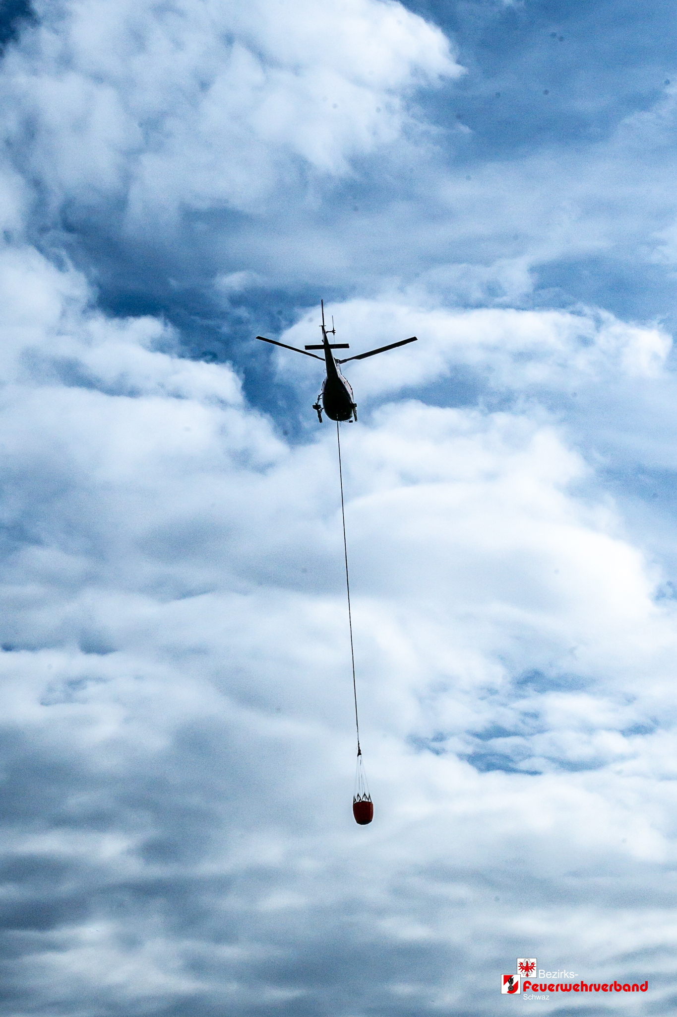 Die Libelle Tirol flog vier Mann der FF Wiesing in das Einsatzgebiet auf den Berg, um die Flughelfer bei den Löscharbeiten zu unterstützen. Vor Ort wurden die betroffenen Flächen umgegraben, Latschen entfernt und der Bereich mittels insgesamt zehn Wassertransportflügen vollständig abgelöscht.