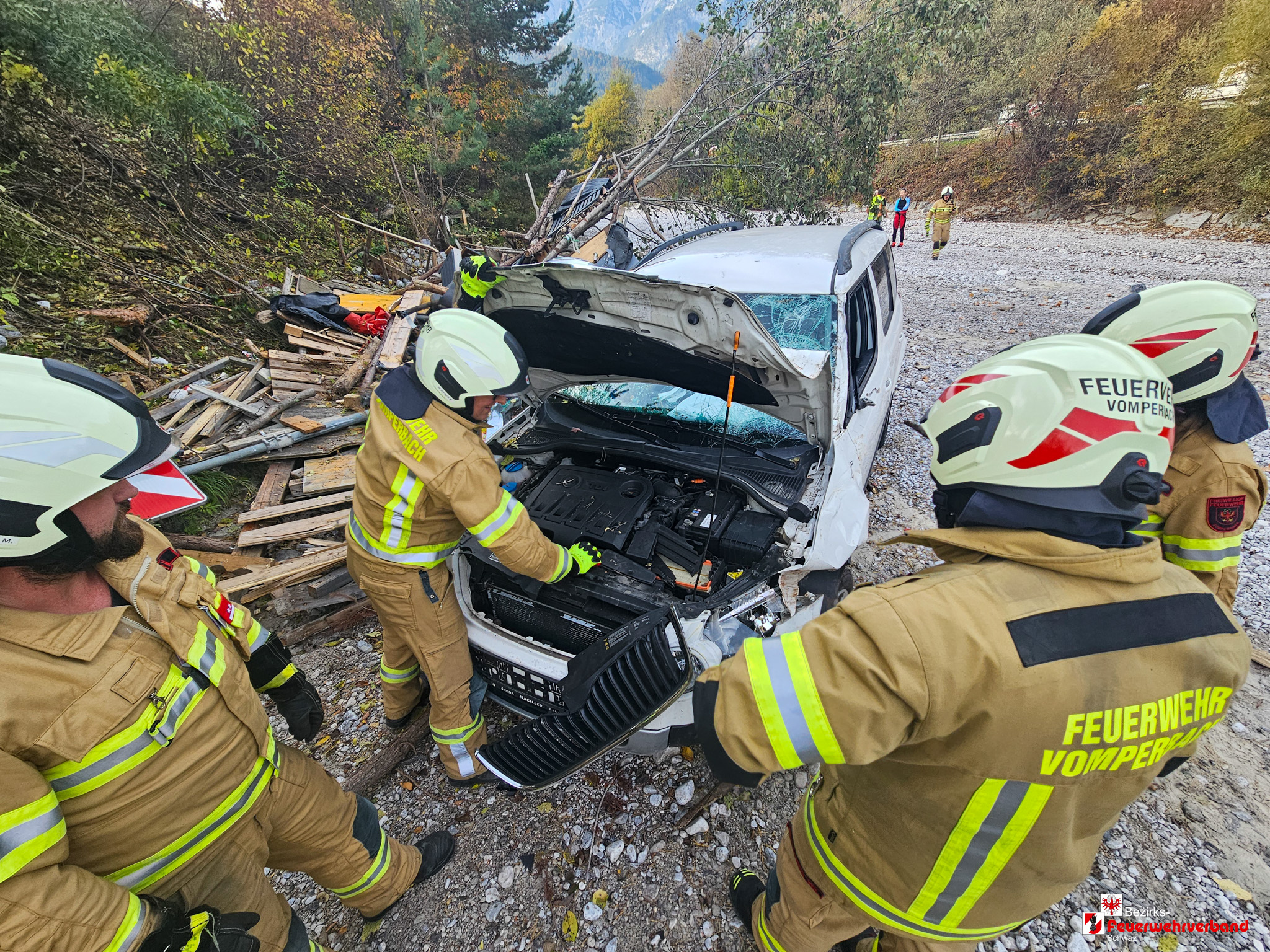 Der PKW wurde dabei von Bäumen und einem Baumhaus abgebremst und kam schwer beschädigt zum Stillstand. Der Lenker hatte großes Glück im Unglück: Er erlitt nur leichte Verletzungen und konnte sich selbstständig aus dem Fahrzeug befreien. Aufgrund der anhaltenden Trockenheit führte der Vomperbach an dieser Stelle derzeit kein Wasser, da dieses vollständig für die Stromerzeugung zum Kraftwerk abgeleitet wird – ein Umstand, der Schlimmeres verhinderte.