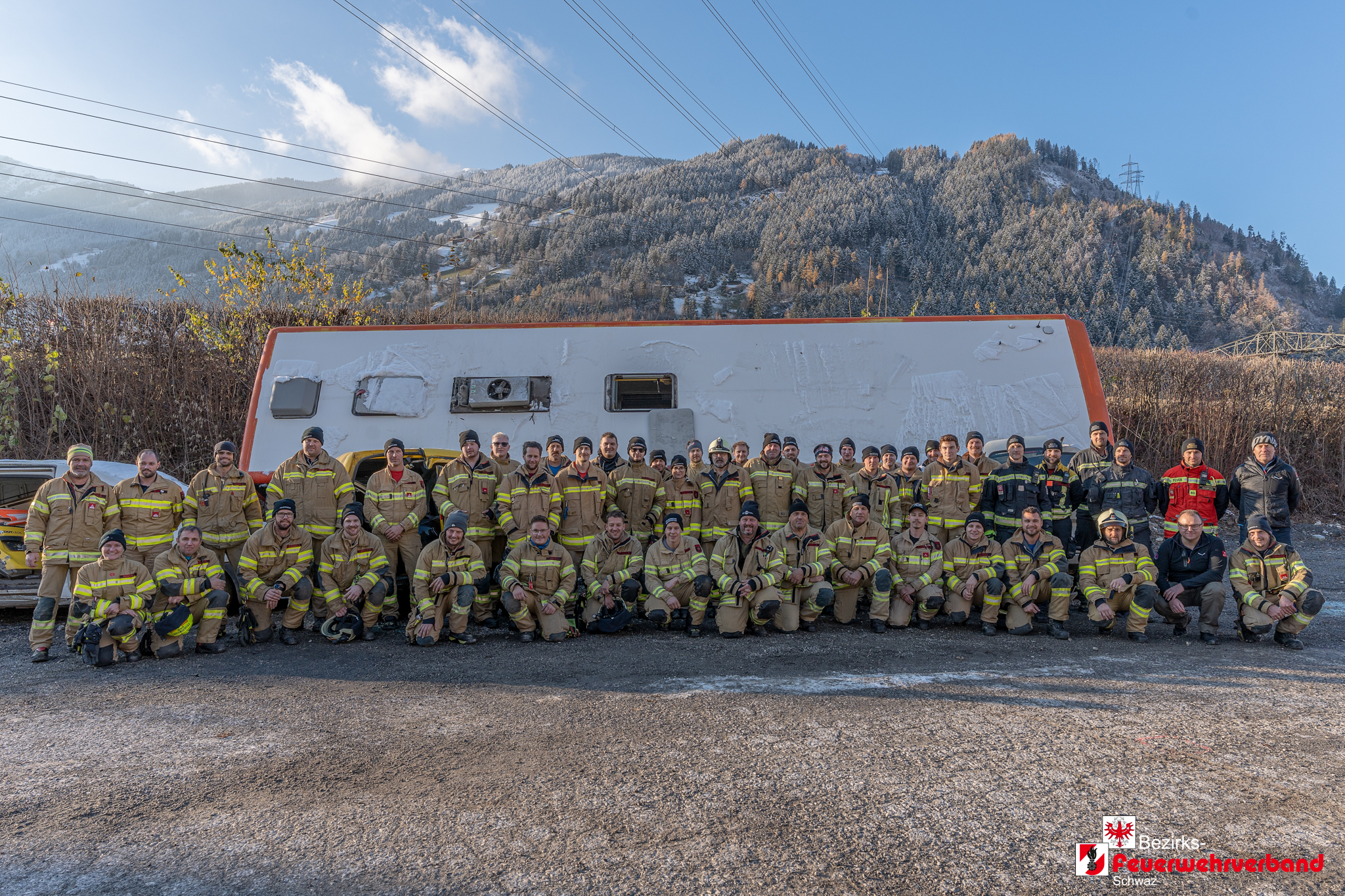Nach Abschluss der Übung fand eine kurze Nachbesprechung über die gewonnenen Erkenntnisse statt, um die Abläufe bei einer solch komplexen Einsatzsituation weiter zu optimieren. Den Abschluss bildete eine gemeinsame Jause mit kameradschaftlichem Austausch. Ein besonderer Dank gilt der Berufsfeuerwehr Innsbruck für die Unterstützung sowie der Firma Huber Autoreisen für die Bereitstellung des Skibusses.