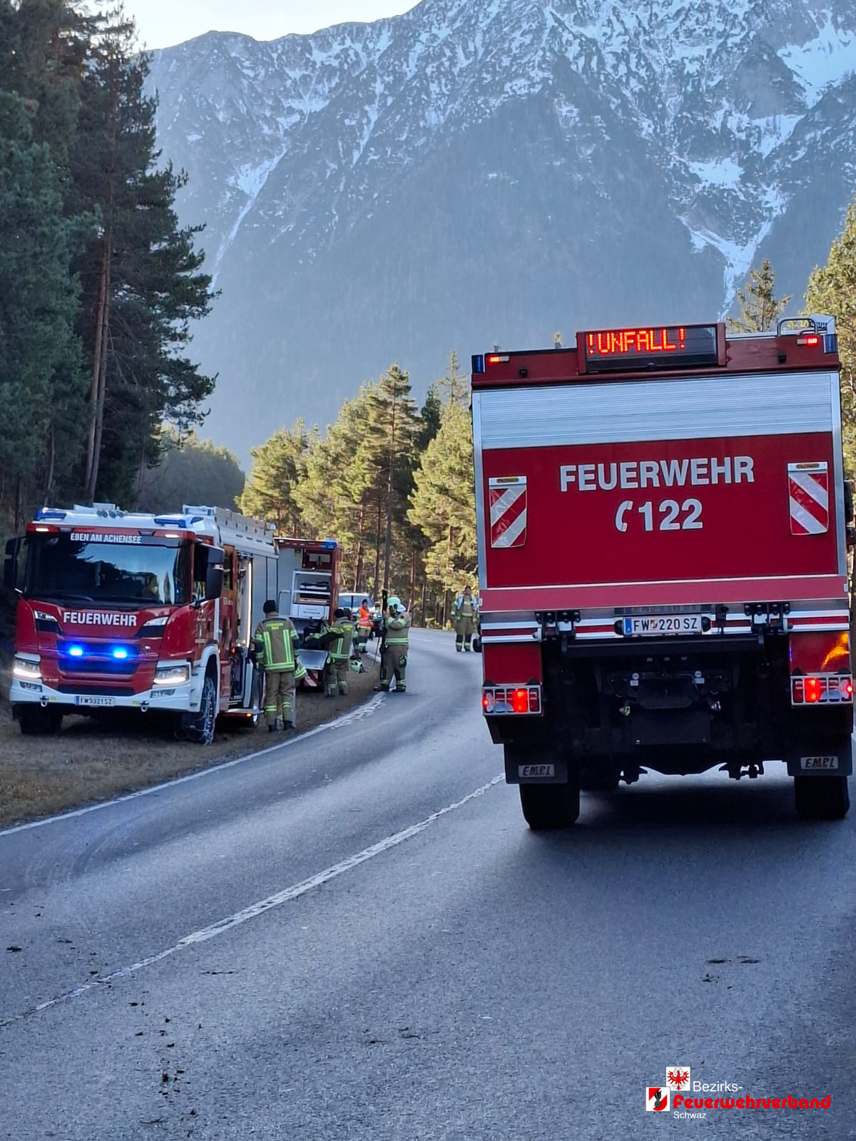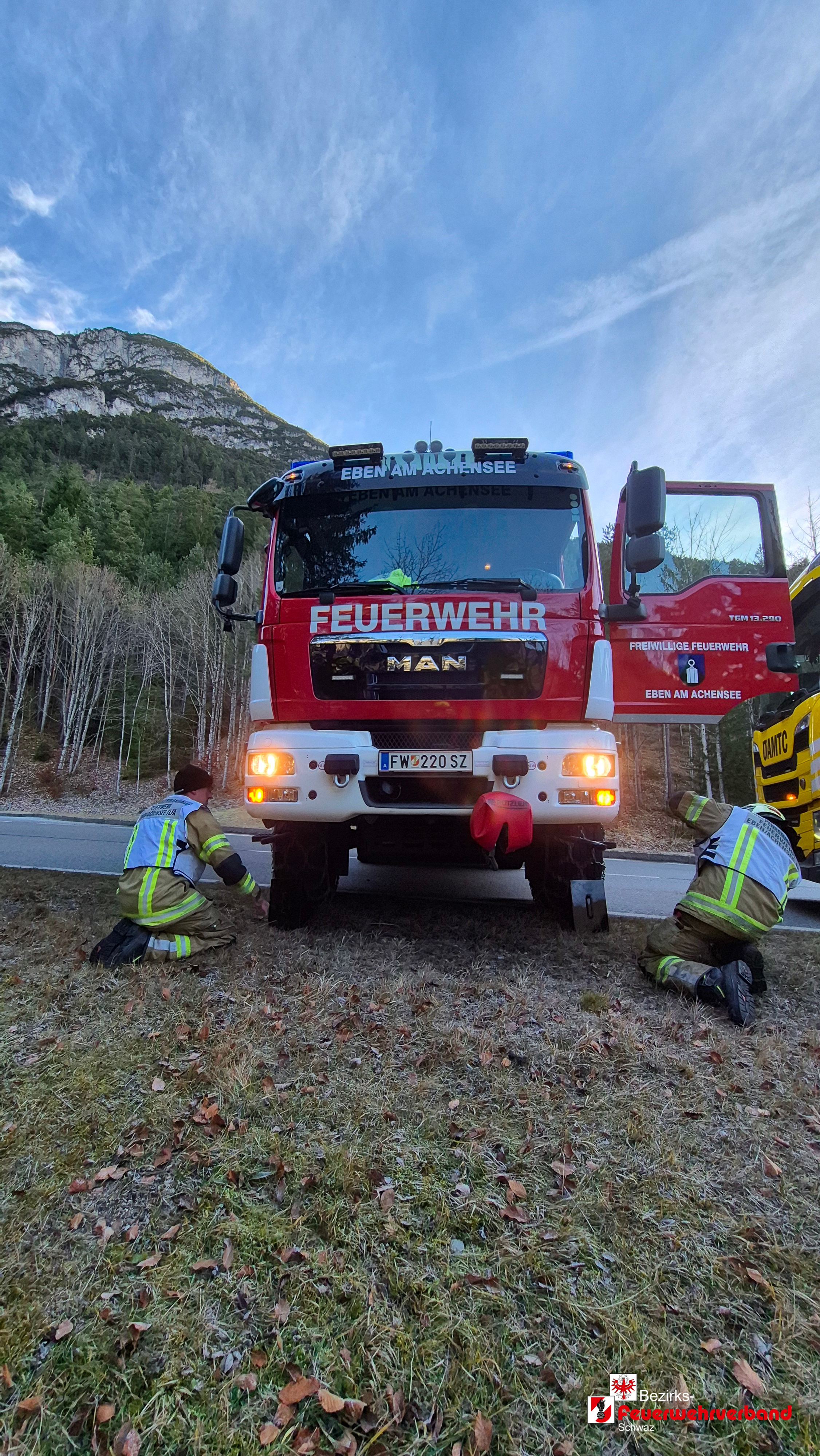 Ein einsatzreiches Wochenende liegt hinter der FF Eben am Achensee. Nach einem Garagenbrand am Samstagnachmittag folgte am Sonntag, dem 21. Dezember 2025, die nächste Alarmierung: ein Verkehrsunfall auf der B181 Achenseestraße im Gemeindegebiet von Eben am Achensee.