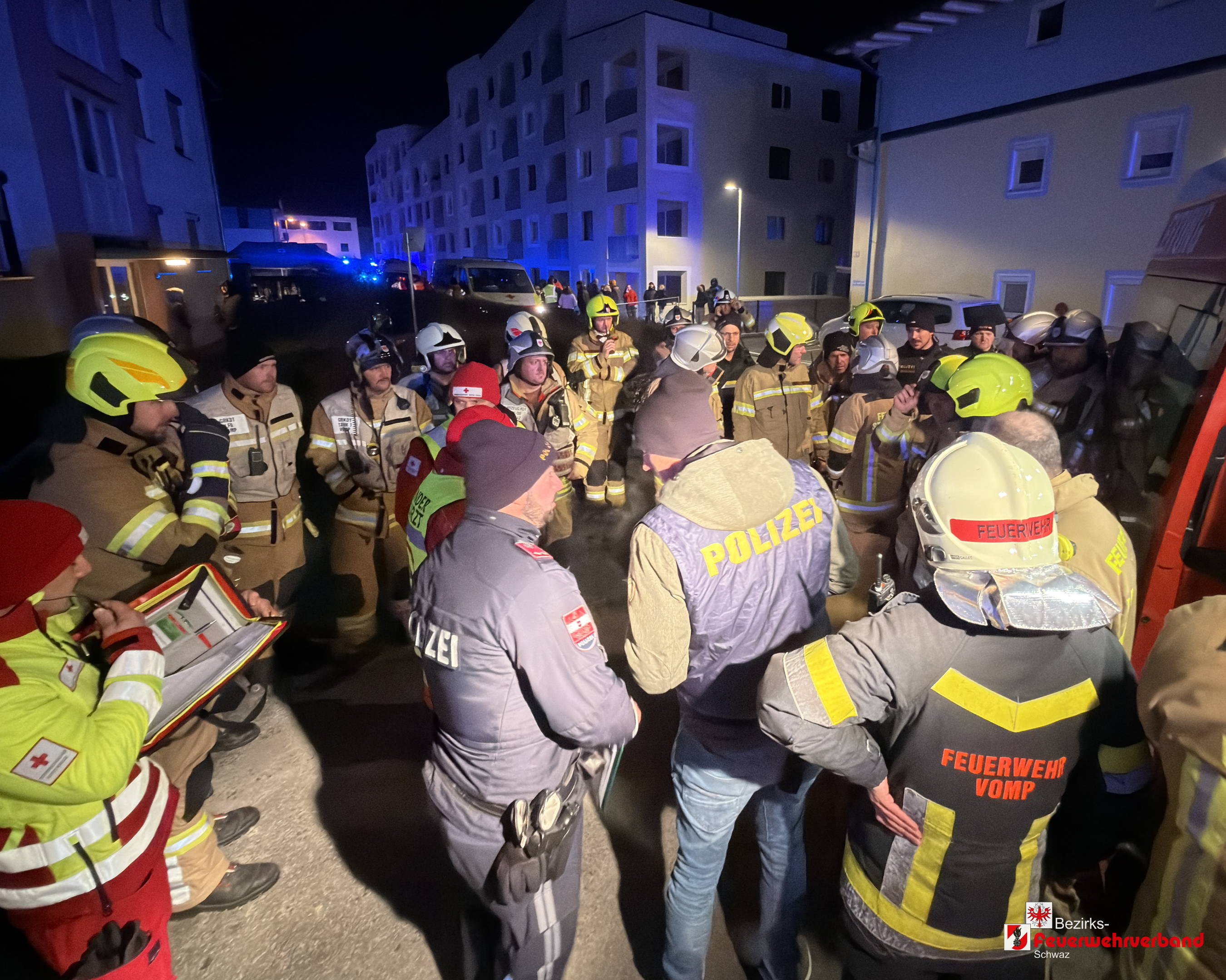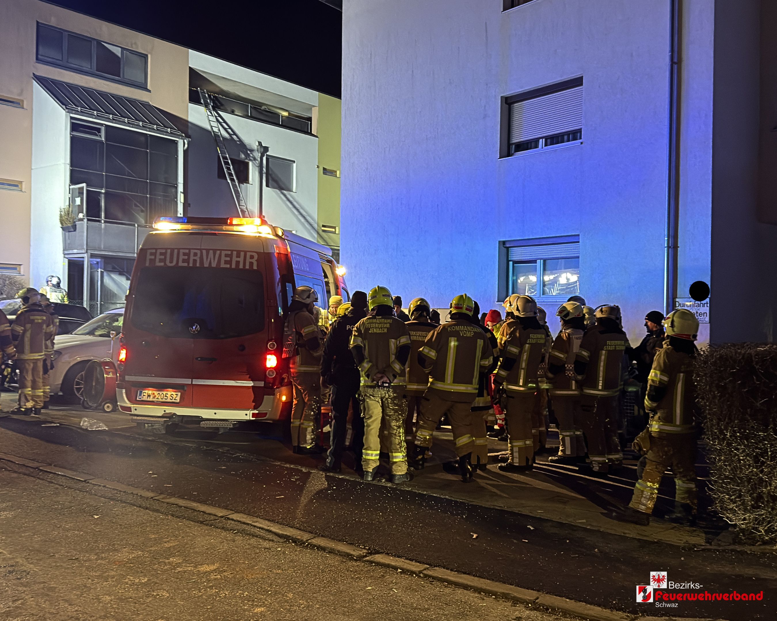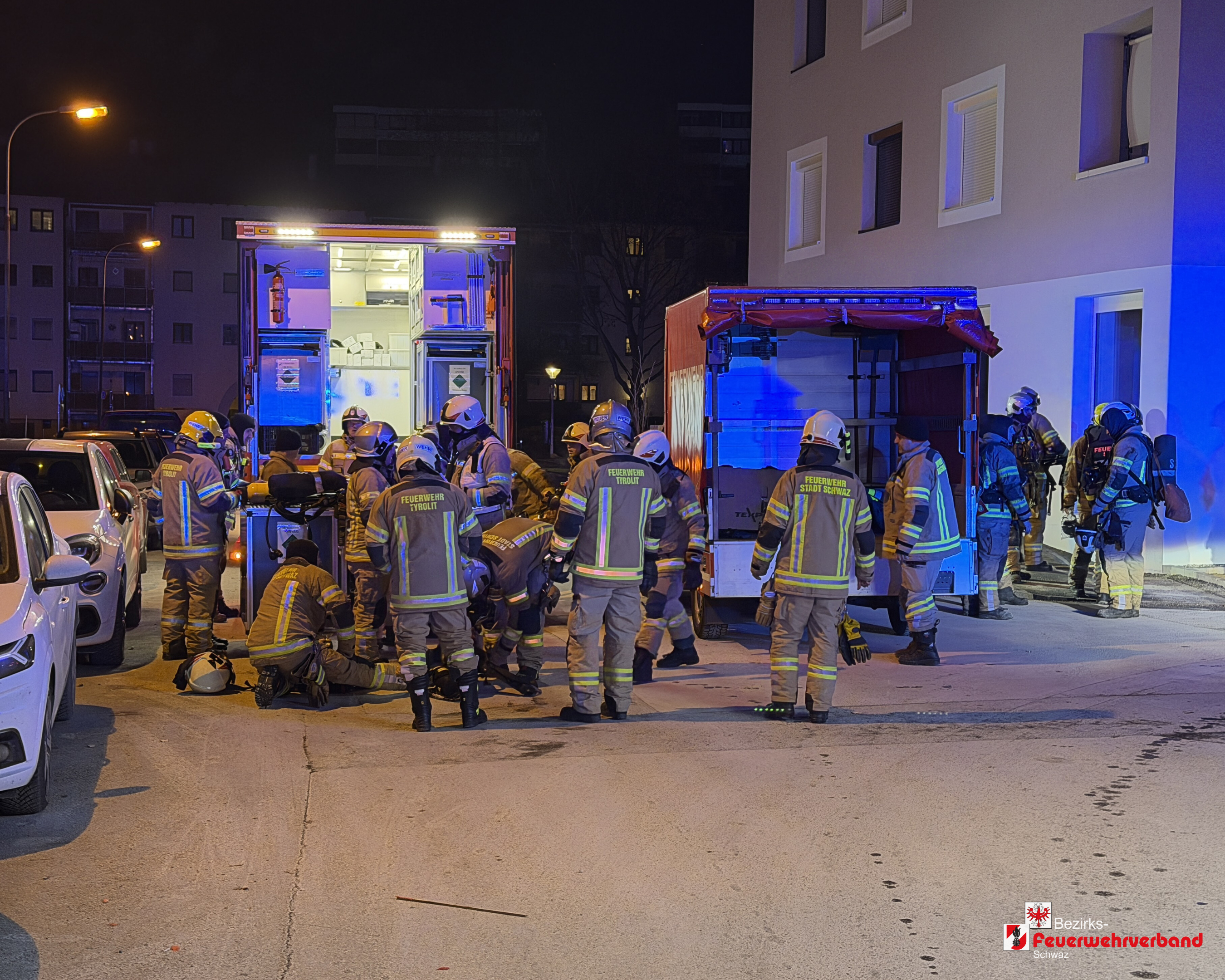 Schwaz – Am 1. Jänner 2026 wurde die Feuerwehr Schwaz um 01:21 Uhr zu einem vermeintlichen Brand eines Müllcontainers im Gartenbereich einer Wohnanlage alarmiert. Aufgrund zahlreicher Meldungen und der raschen Brandausbreitung auf mehrere Wohnungen löste die Leitstelle Tirol um 01:24 Uhr Sirenenalarm in Schwaz aus. Zeitgleich wurde die Betriebsfeuerwehr Tyrolit mitalarmiert.
