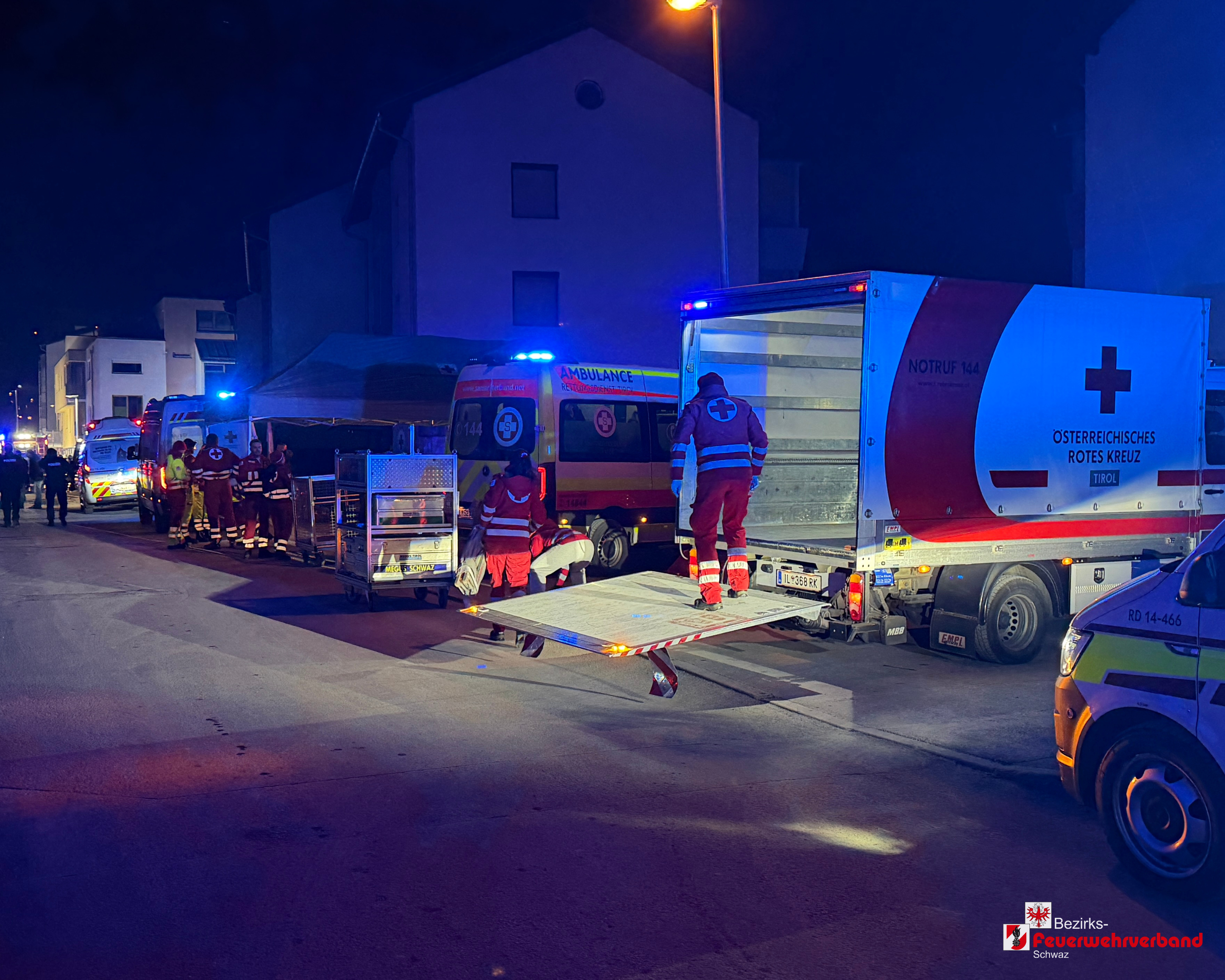 Insgesamt wurden drei Personen mit unbestimmten Verletzungen zur weiteren Abklärung in das Krankenhaus Schwaz gebracht. 14 Personen mussten evakuiert und vorübergehend in einer Ersatzunterkunft in der Osthalle Schwaz untergebracht werden.