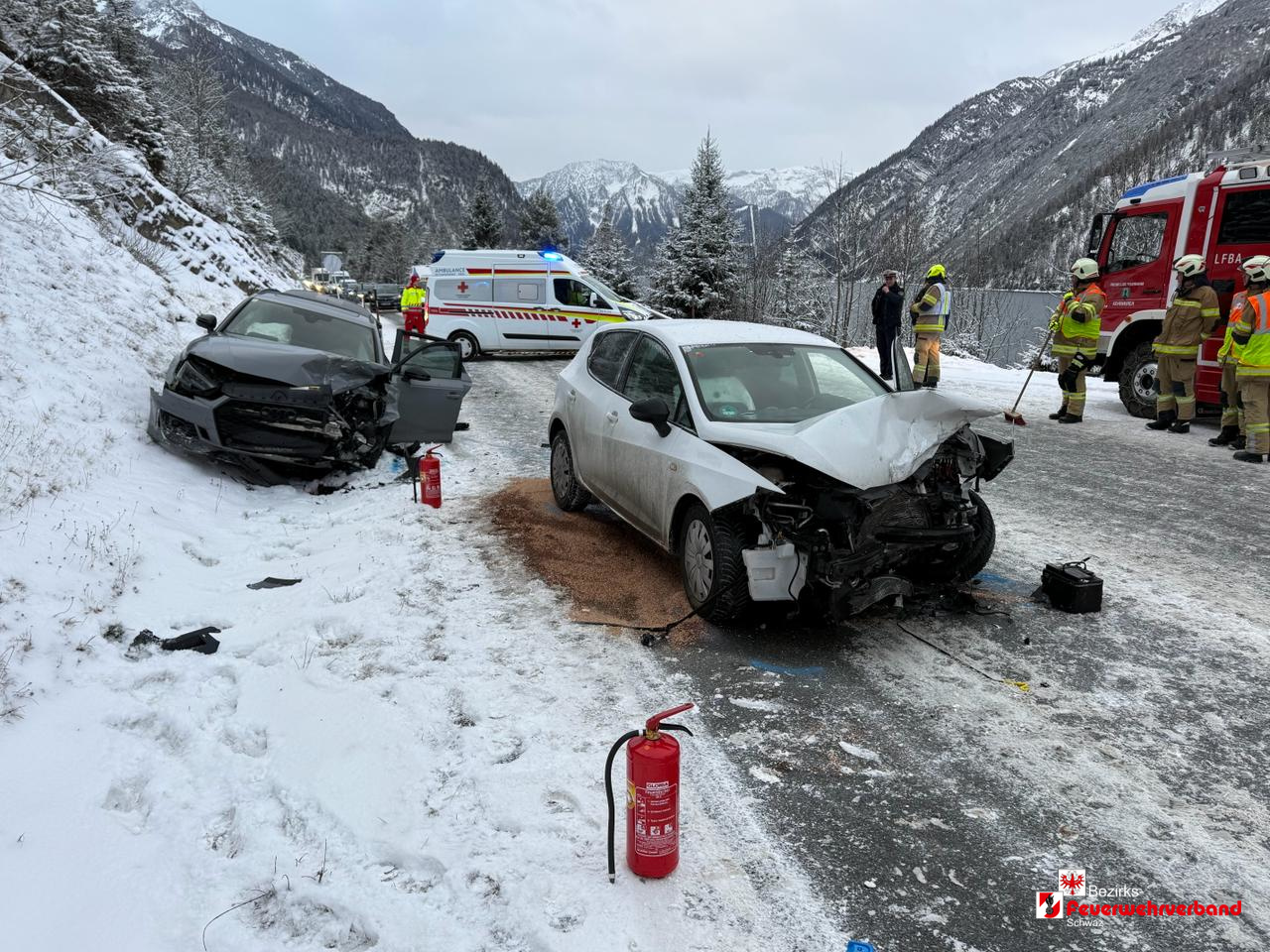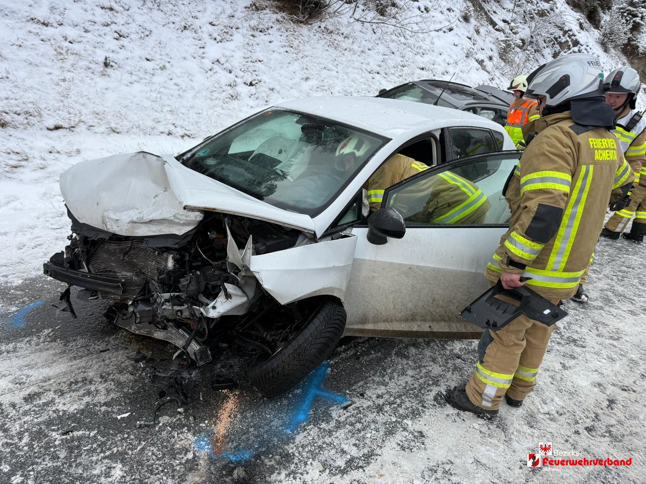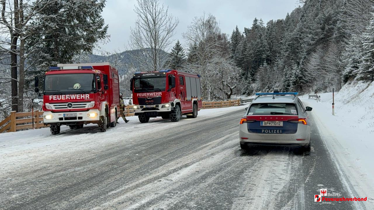 Am 08. Januar 2026 wurden die Freiwilligen Feuerwehren Achenkirch und Achental um 07:50 Uhr zu einem Verkehrsunfall auf der Achensee-Bundesstraße B181 alarmiert. Eine Lenkerin war mit ihrem PKW von Achenkirch in Richtung Eben am Achensee unterwegs, als sie auf Höhe des Straßenkilometers 19,700 in einer leichten Rechtskurve auf der schneebedeckten Fahrbahn ins Schleudern geriet. In der Folge kam das Fahrzeug auf die Gegenfahrbahn und kollidierte frontal mit dem entgegenkommenden PKW.
