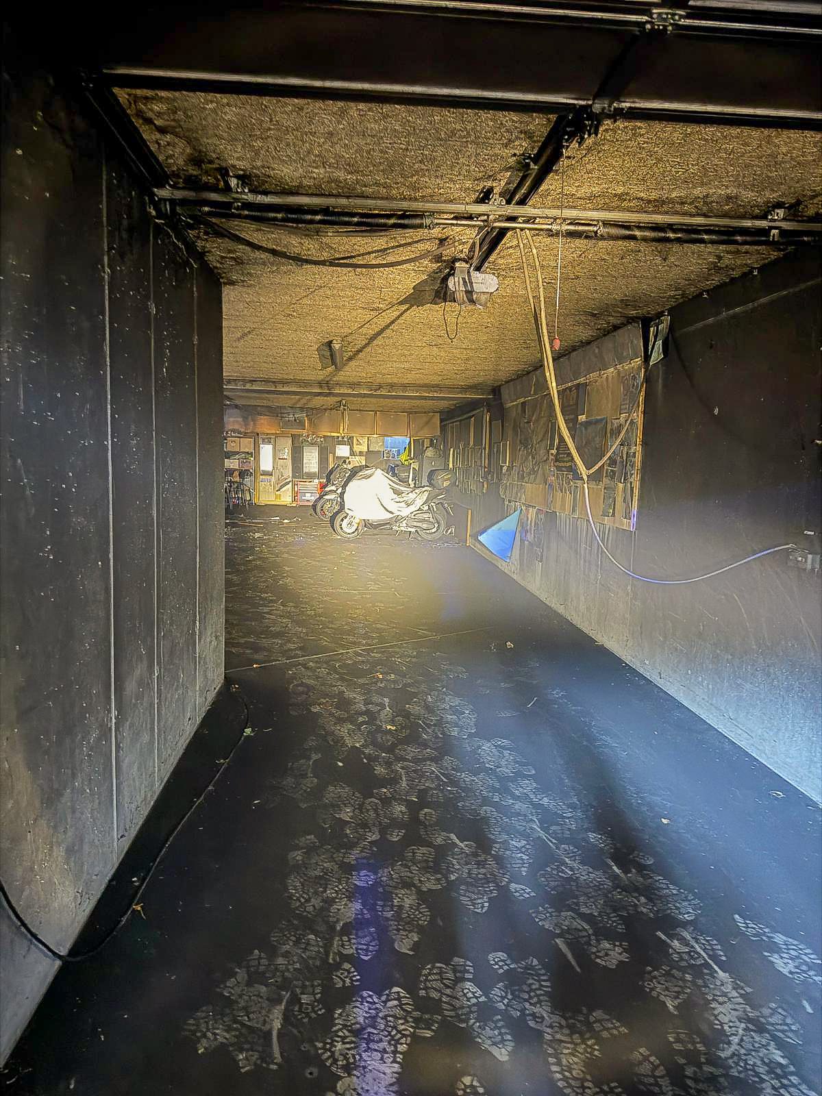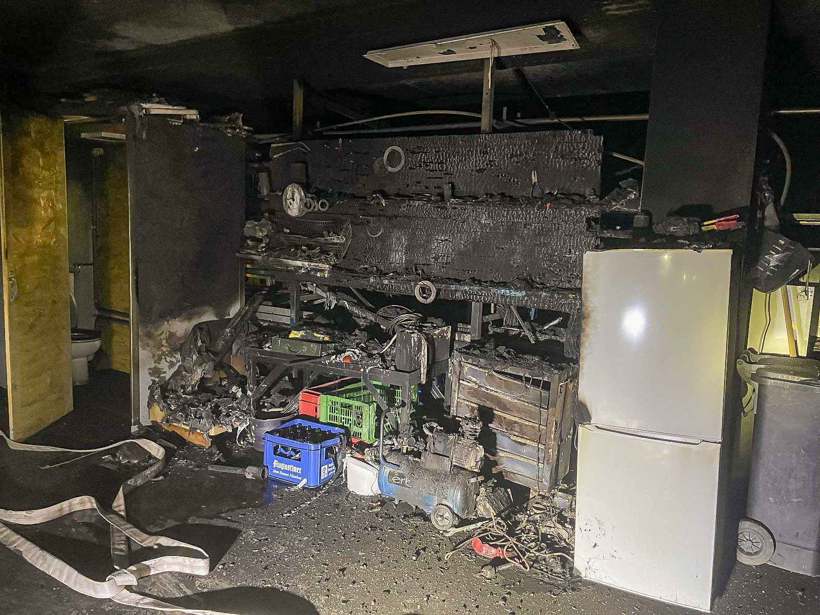 Im Bereich einer Werkbank wurde ein Brandherd festgestellt, der vermutlich in der Nacht von Montag auf Dienstag entstanden ist und aufgrund von Sauerstoffmangel selbstständig erloschen war. Nach umfangreichen Belüftungsmaßnahmen mit mehreren Belüftungsgeräten sowie unserem Großlüfter konnte die Einsatzstelle an die Polizei übergeben werden.