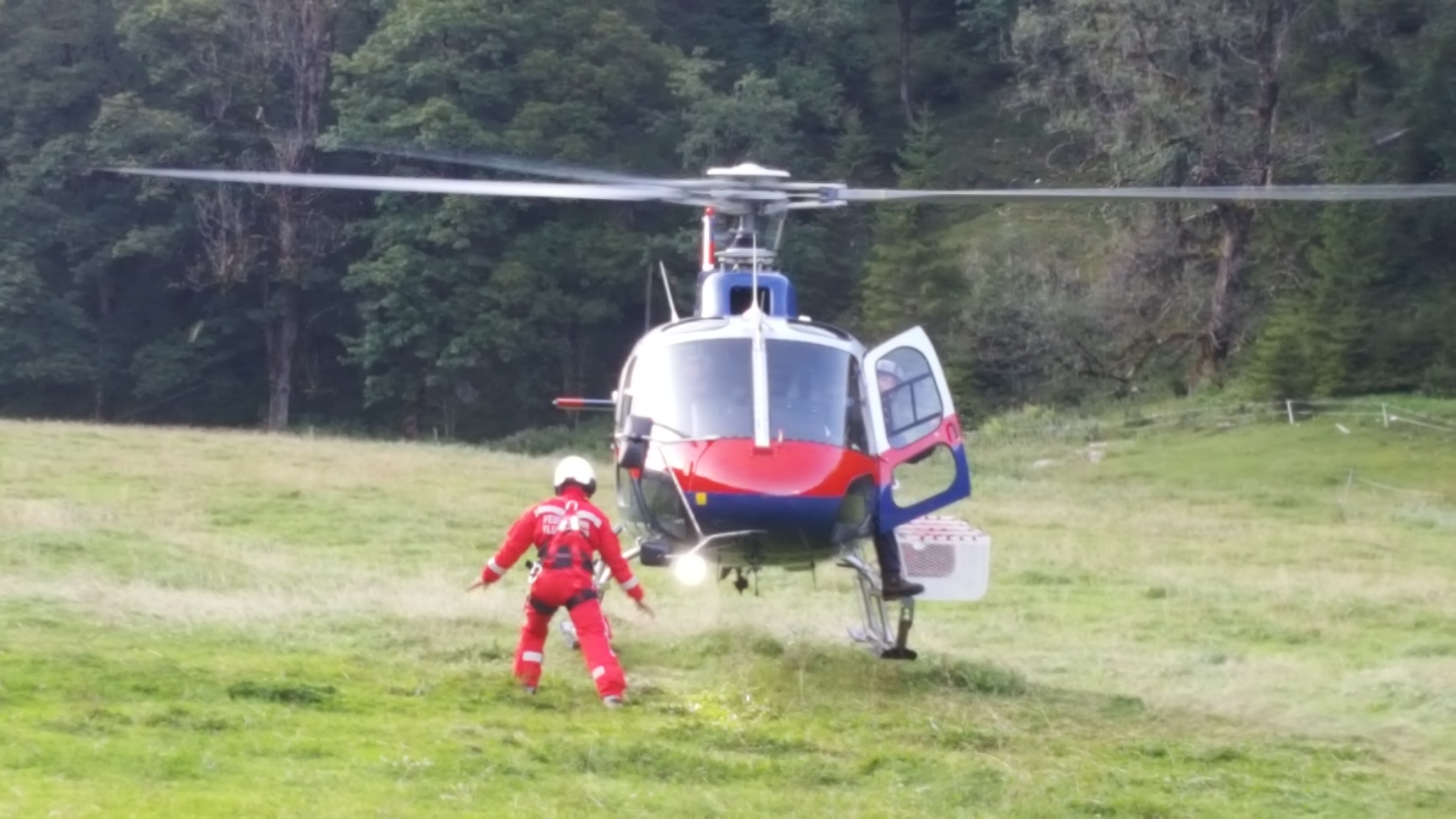 Wegen der schwierigen Lage des vermuteten Brandplatzes wurde über das BMI ein Hubschrauber zur besseren Erkundung angefordert .Aus der Luft war schnell klar, dass es sich um das gemeldete Zweckfeuer handelte, welches außer Kontrolle geraten war. Sofort alarmierte die Einsatzleitung die Feuerwehren Achenkirch, Achental Hinterriss.