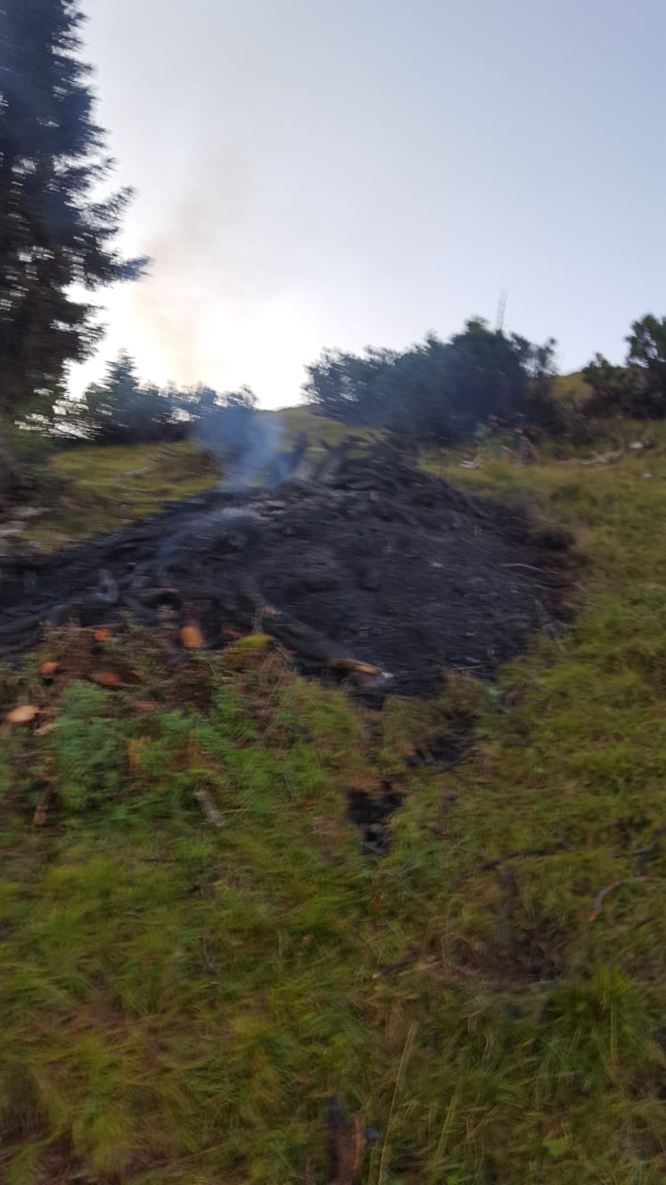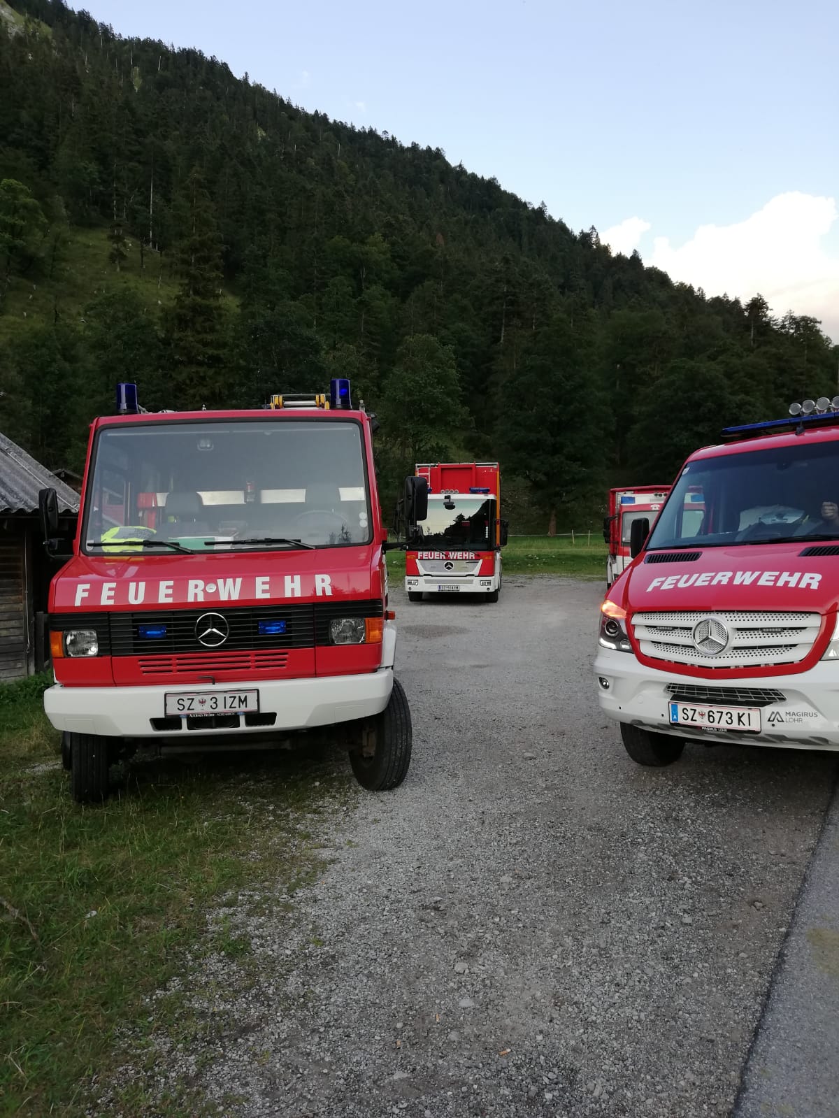 Gestern wurden die Feuerwehren von Achenkirch zunächst über die Kommandoschleife zu einem vermuteten Waldbrand am Stierjoch Hinterriss gerufen. Nach kurzer Vorbereitung rückte ein Erkundungsfahrzeug (MTF-A Achenkirch mit gemischter Mannschaft) in die Hinterriss aus. Da anfänglich noch nicht klar war, ob es sich um den Brand nicht um ein gemeldetes Zweckfeuer im Bereich Tölzer Hütte handelte startete die Erkundung. Nach mehr als einer Stunde Fahrzeit konnte die MTF-Mannschaft das Feuer aufgrund aufsteigender Rauchschwaden lokalisieren.