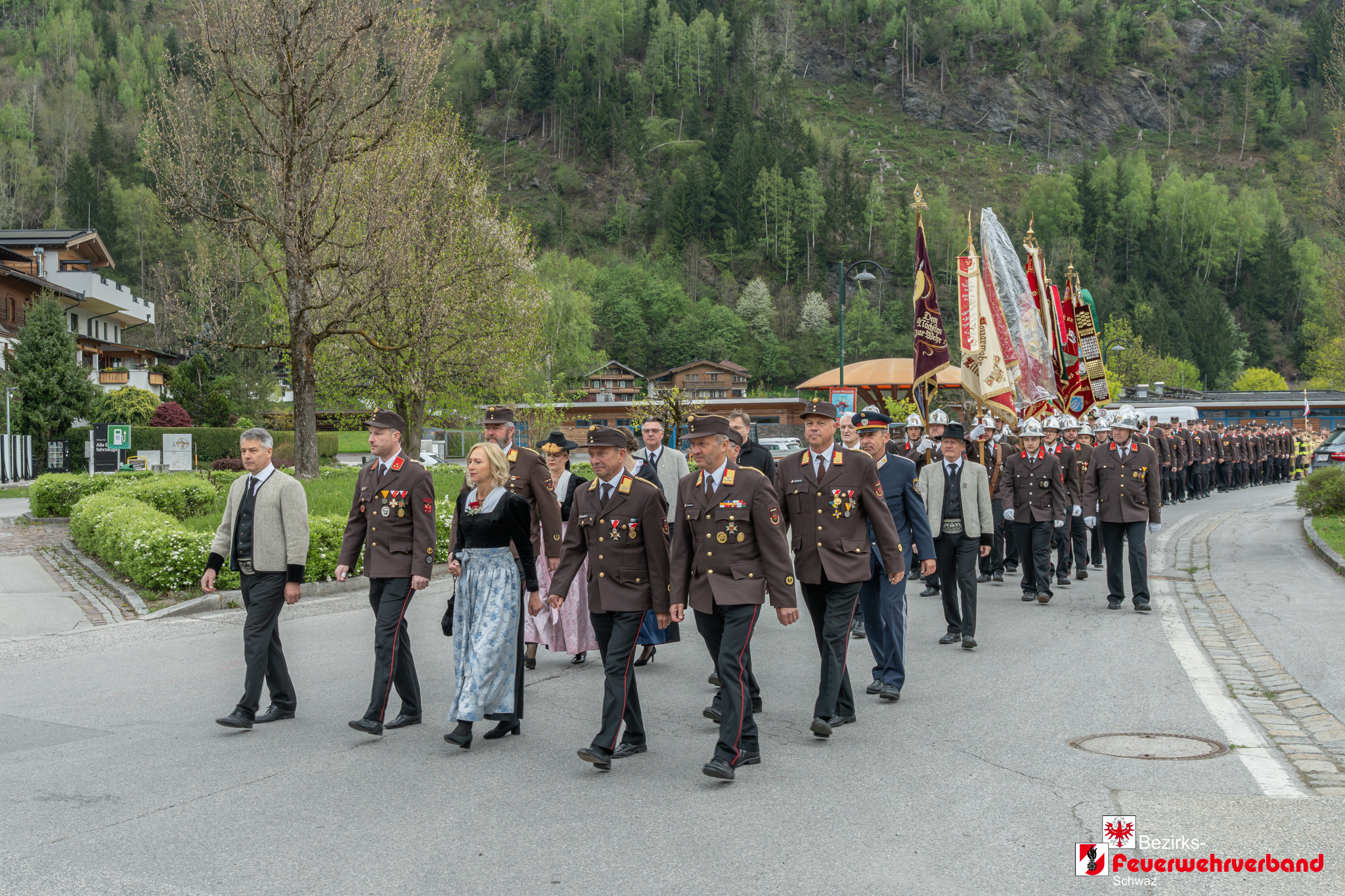 Zu Beginn versammelten sich die Feuerwehrmitglieder, die Bundesmusikkapelle Stumm, die Schützenkompanie Stumm sowie zahlreiche Ehrengäste beim Rüsthaus der Feuerwehr. Gemeinsam marschierten sie zum Pavillon der Gemeinde Stumm, wo die Feierlichkeiten stattfanden.