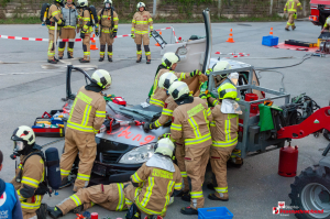 Nachdem die Feuerwehr Fügen die Gaskonzentration gemessen und die Art des Gefahrguts bestimmt hatte, konnten die Kameraden der Feuerwehr Kaltenbach mit hydraulischem Rettungsgerät die eingeklemmten Personen befreien und nach Erstversorgung dem Rettungsdienst übergeben.